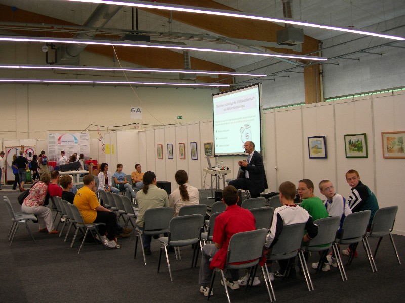 Am 9. September gingen die Schülerinnen und Schüler der 8. Klassen des Leibniz-Gymnasiums zur Ausstellung "Gesundheitswelt" in die Messehalle. Dort waren viele Informationsstände rund um das Thema "Gesundheit" aufgebaut. Es waren u.a. Krankenkassen, das Städtische Krankenhaus Pirmasens und das Deutsche Rote Kreuz anwesend und präsentierten diverse Themen. Den Schülerinnen und Schülern, nicht nur denen vom Leibniz-Gymnasium, war so die Möglichkeit gegeben einen Fitnesstest zu machen, die Sehstärke der Augen ermitteln zu lassen und sich natürlich über vielerlei Dinge, die mit Gesundheit zu tun haben, zu informieren. Im Mittelpunkt standen jedoch die Vorträge von Medizinern und Spezialisten.