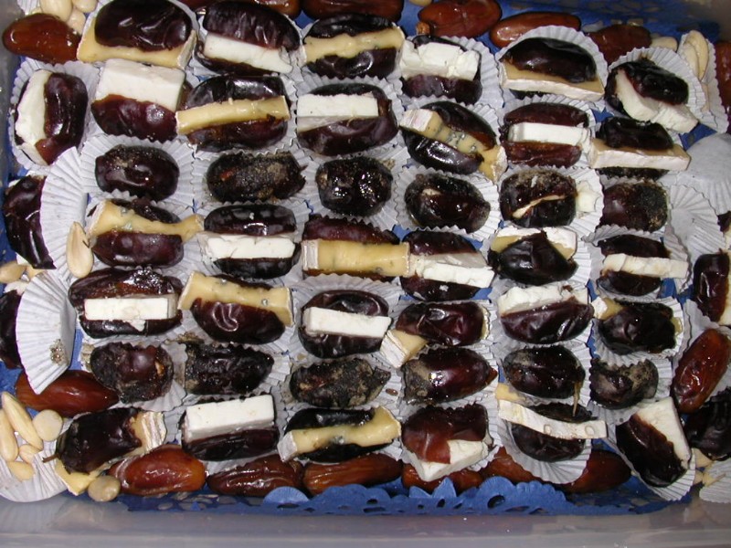 Als Gustatio (Vorspeise) gab es gefüllte Datteln mit Ziegenkäse, Oliven, Eier mit Sardellen, Moretum - einen Käseaufstrich und Kräuterbrot.