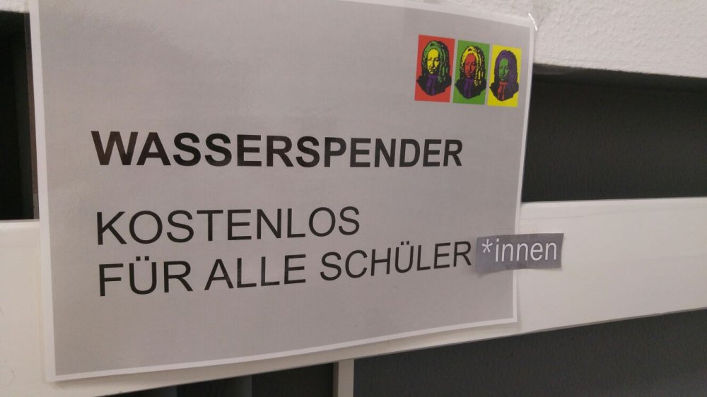 Dem Prinzip von Barbara. folgend hat die Poetry-Slam-AG des Leibniz-Gymasiums in den vergangenen Wochen diverse Hinweisschilder im Schulhaus gesichtet und im Anschluss neu arrangiert, kommentiert, verfälscht oder ergänzt. Die Kunstwerke stellen neue Verknüpfungen und Beziehungen her, werfen Fragen auf, sorgen für Gelächter, Irritation oder Nachdenklichkeit. Lange werden sie sicher nicht Bestand haben....doch das Kleben geht weiter... :)