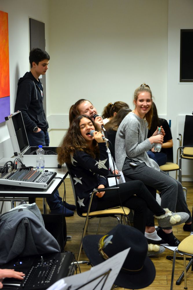 Neben den Proben gab es die üblichen Spieleabende mit dem unermüdlichen Spielleiter Herrn Lutz, bei denen immer wieder schön zu sehen ist, wie selbstverständlich Schülerinnen und Schüler aus allen Klassenstufen begeistert mitspielen („Herr Lutz, spielen wir noch eine Runde „Werwolf?").