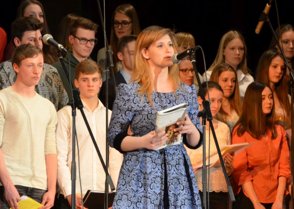 Den zweiten Teil des Musikabends eröffnete der Chor der Klassen 8-13. Dass auch Schülerinnen und Schüler der MSS 13, eigentlich vom Schulbesuch bereits befreit, in großer Zahl anwesend waren, ist ein besonderes Lob wert. Der stark besetzte Chor zog vor allem mit teils gefühlvollen, teils humoristischen Soli das Publikum in seinen Bann.