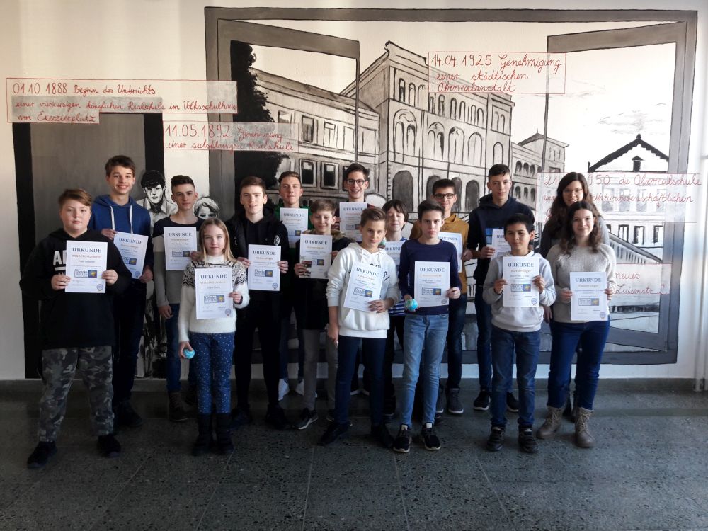 In der fünften Jahrgangsstufe siegten Leo Guth (5d), Clara Thiele (5c) und Marcel Hirnstein (5a). Felix Uscher (6b), Felix Stephan (6b) und Johanna Germann (6b) freuten sich über den Sieg in der Klassenstufe 6. Die Sieger der Jahrgansstufe 7 sind Nils Lehner (7c), Philipp Mersch (7c) und Ramin Hell (7d). Felix Schäfer (8a), Christian Müller (8b), Christian Welter (8b) bewiesen ebenfalls großes geographisches Wissen und belegten somit die ersten Ränge in der Klassenstufe 8. Die ersten drei Plätze in der Jahrgangsstufe 9 gingen an Yannick Groh (9a), Florian Schilling (9c) und Sophie Kampferseck (9c). Wie bereits im vergangenen Jahr erzielten punktgleich vier Jungen der 10a den Stufensieg der zehnten Klassen - Davio Frank, Florian Eltze, Tim Neumahr und Tim Derda.