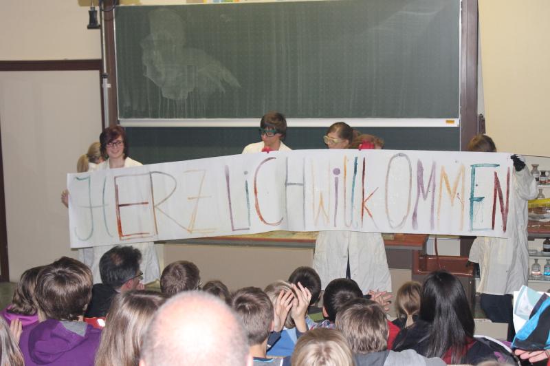 Im Februar 2012 finden an den weiterführenden Schulen die Anmeldungen für die neuen 5. Klassen statt. Um die Wahl der richtigen Schule zu erleichtern, führte das Leibniz-Gymnasium Pirmasens am Freitag, 18.11.11, ab 16.30 Uhr eine Informationsveranstaltung durch. Eltern und Schüler(innen) der 4. Klasse Grundschule hatten Gelegenheit, das Schulhaus mit seinen Einrichtungen kennen zu lernen, mit den Fachlehrer(inne)n Gespräche zu führen und an Vorführungen nicht nur aus dem naturwissenschaftlichen Bereich teilzunehmen. Zum Auftakt um 16.30 Uhr informierte der Schulleiter OStD Kallenbach im Musiksaal über die besonderen Unterrichts- und Lernangebote am Leibniz-Gymnasium. Orientierungsstufenleiter Herr Clemenz stellte das spezielle "LeKo"-Konzept des Leibniz-Gymnasiums vor (Lern- und Kommunikationstraining). Die zukünftigen Sextaner wurden von der Schülervertretung betreut und von Station zu Station durch das Haus geführt. Dabei gab es vielerlei Vorführungen und Mitmachaktionen der einzelnen Fachschaften. Außerdem bot die Schülervertretung Kaffee, Kuchen und Getränke an.