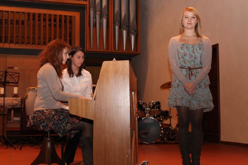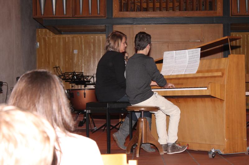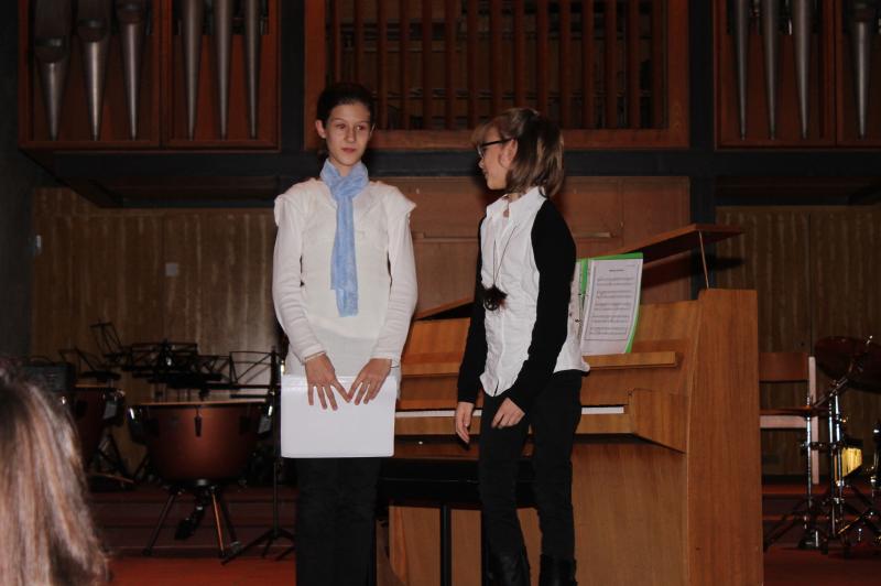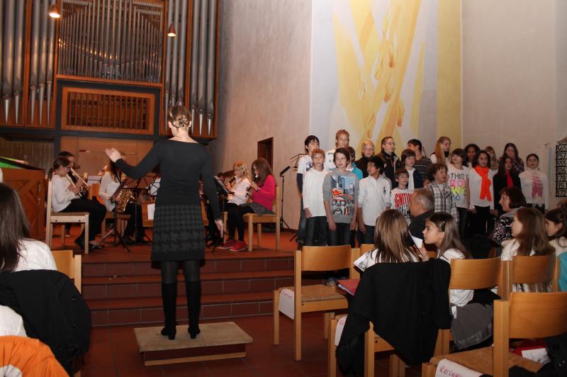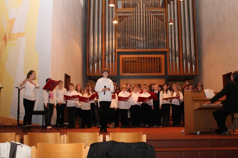 Ein weiteres Mal zeigten die Leibniz-Schüler(innen) beim traditionellen Kammermusikabend ihr musikalisches Können. Wieder wurde eine Brücke von der Kammermusik zum Chorgesang geschlagen, da zu den rein instrumentellen Vorträgen ein Programm des Chors der Klassen 5 - 7 hinzukam, arrangiert und geleitet von Herrn Schlatter. Hinzu kamen die Klassen 5c und 6a, die im Klassenverband mitsangen. Die Johanneskirche bot wieder ein Forum in der Nachbarschaft für die vielen musikalischen Talente im instrumentellen, aber auch gesanglichen Bereich. Die Instrumental-AG trat nun bereits im dritten Jahr unter der neuen Leitung von Frau Breum auf und gab wieder den Auftakt zum Abend. Schulleiter Herr Kallenbach begrüßte die Gäste, die ein weiteres Mal in so großer Zahl erschienen waren, dass der Kirchenraum die Mitwirkenden und Gäste kaum fassen konnte. Viele bekannte und neue Interpreten boten ein Programm, in dem Klavier und Gesang dominierten. Die Elternschaft sorgte für das leibliche Wohl in der Pause. Mit Herrn Schlatter hatte dann der Chor der Jahrgänge 5 bis 7 seinen Auftritt. Nach zwei weiteren herausragenden Klaviervorträgen gehörte der Raum dem Schulorchester, das auch wieder von Ehemaligen verstärkt wurde. Das Orchester spielte selbstbewusst sicher und gefiel in diesem Jahr ganz besonders.