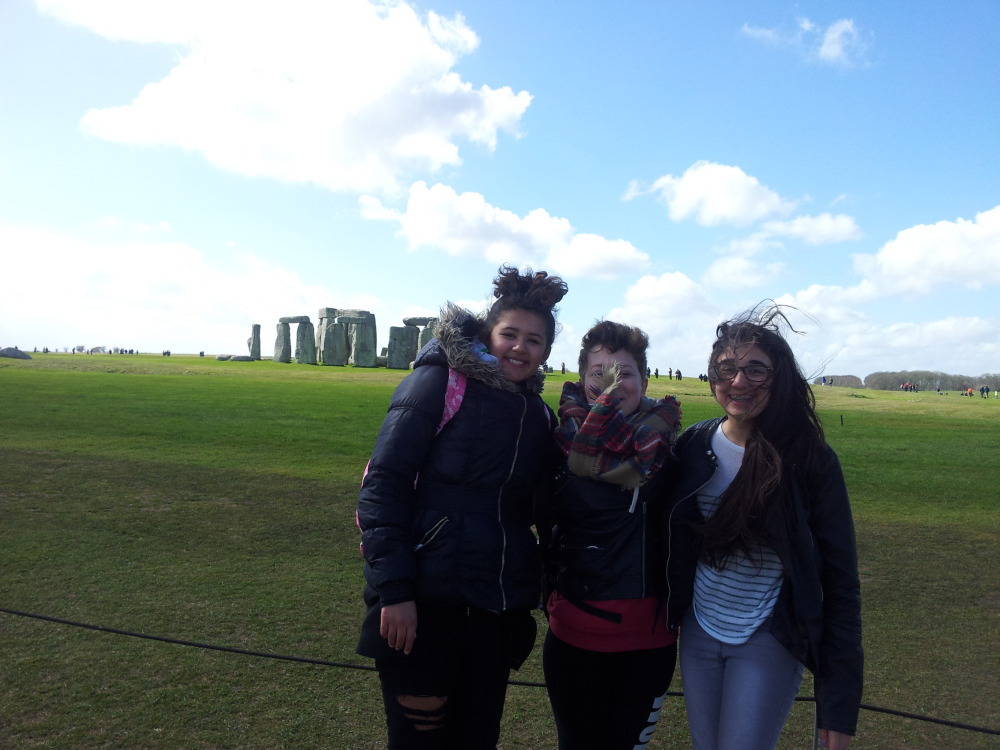 And we tasted a lot of English food. We think it is very good and very special. For some people it tastes good, but for some bad. In England, there is lots of food that is special for this country, for example "flapjack". It is made with sugar, syrup, butter and oats and it is simply delicious. Another typical food is "Cornish pasties", a kind of pie filled with meat and vegetables we could buy in Bath or at the café at Stonehenge. So we didn´t only eat fast food ;-).