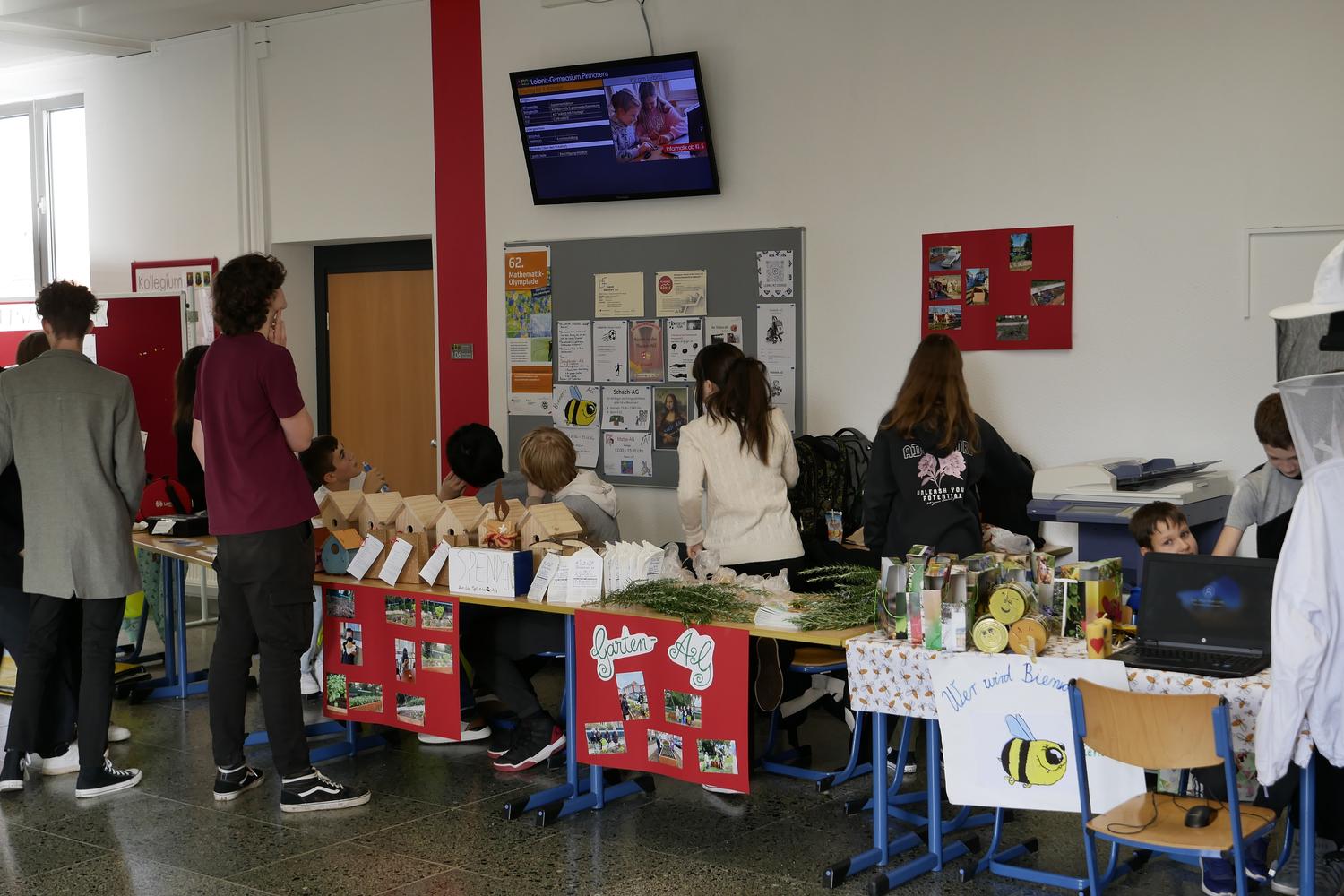 Am 4.11.22 präsentierte sich die Schulgemeinschaft den aktuellen 4. Klassen wieder beim jährlichen Informationstag. Das erprobte "Corona-Konzept" des letzten Jahres kam wieder zum Einsatz und so konnten die Schüler*innen im zwar etwas gekürzten, dafür aber umso intensiveren Programm das Haus erkunden. Die SV sowie etliche weitere Schüler*innen unserer Schule zeigten den hoffentlichen "Neuen" ihr zukünftiges Schulhaus. Vieles gab es dort zu entdecken, auch wenn es noch Corona-bedingt noch nicht ganz so voll und lebendig sein konnte wie in Vorjahren - von der BigBand über die Informatik, die Robotik, der Schach-, Garten- und Bienen-AG bis hin zum Ausklang im Parcour der Sporthalle war für alle etwas dabei. Beliebt waren auch die Mitmachstationen bei den Naturwissenschaften.