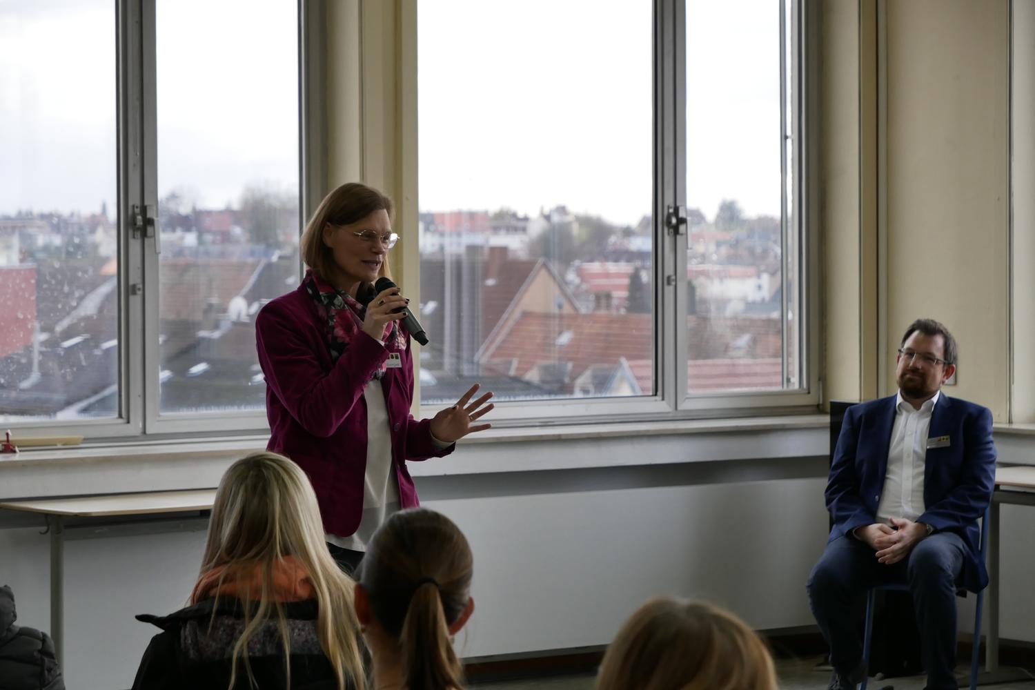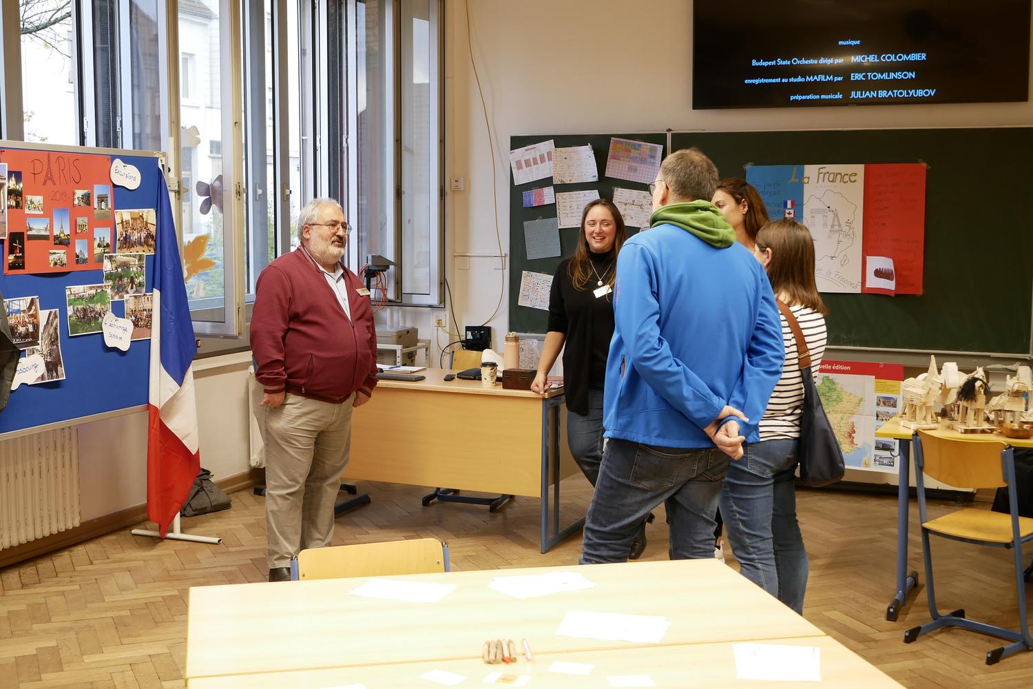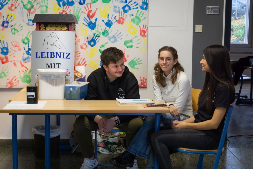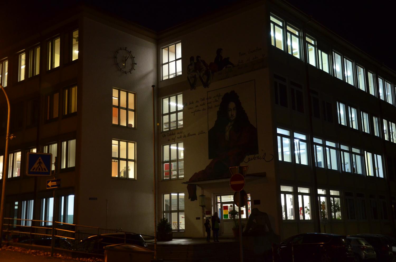 Die Eltern waren währenddessen zum Vortrag über das Gymnasium und die besonderen Angebote des Leibniz eingeladen, bevor auch sie die Schule erkunden konnten. Viele Gespräche ergaben sich mit Kollegium und Elternbeirat nicht zuletzt im Café in der Aula - welche durch den Duft des Popcorn (organisiert von der AG "Leibniz mit Courage") leicht zu finden war.