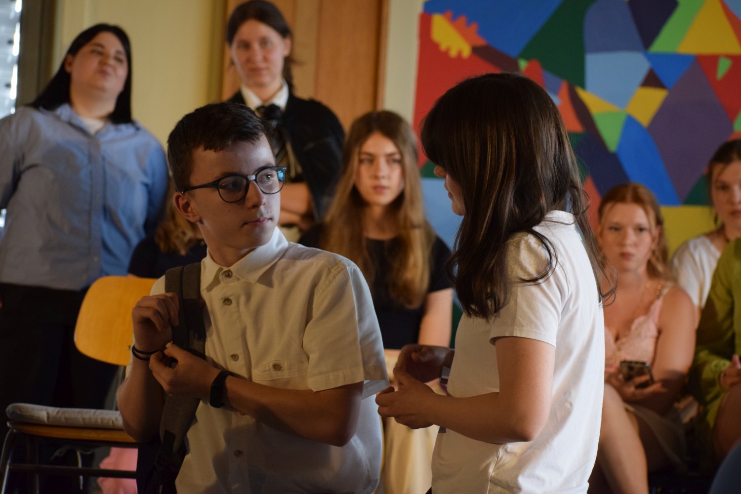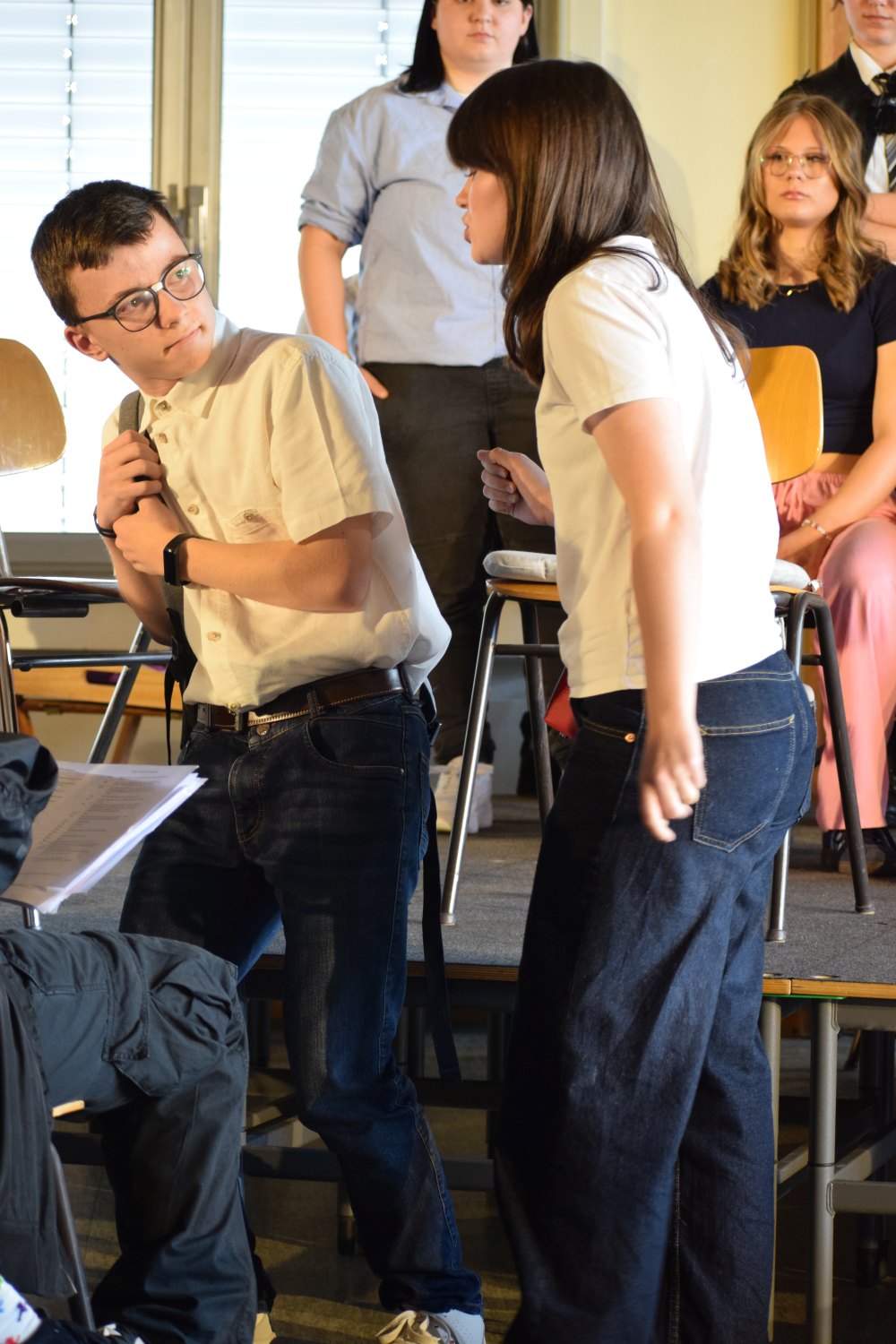 Natürlich braucht man für das perfekte Stück auch die perfekte Musik und die perfekten Effekte zur richtigen Zeit. Dafür sorgten zum Glück Bill Hoai An Le, Leon Knorr und Robin Martel. Aber auch eine Souffleuse ist für jedes Theaterstück essenziell, glücklicherweise übernahm diesen Job Mia Martel, die ihn wirklich mit Bravour gemeistert hat.