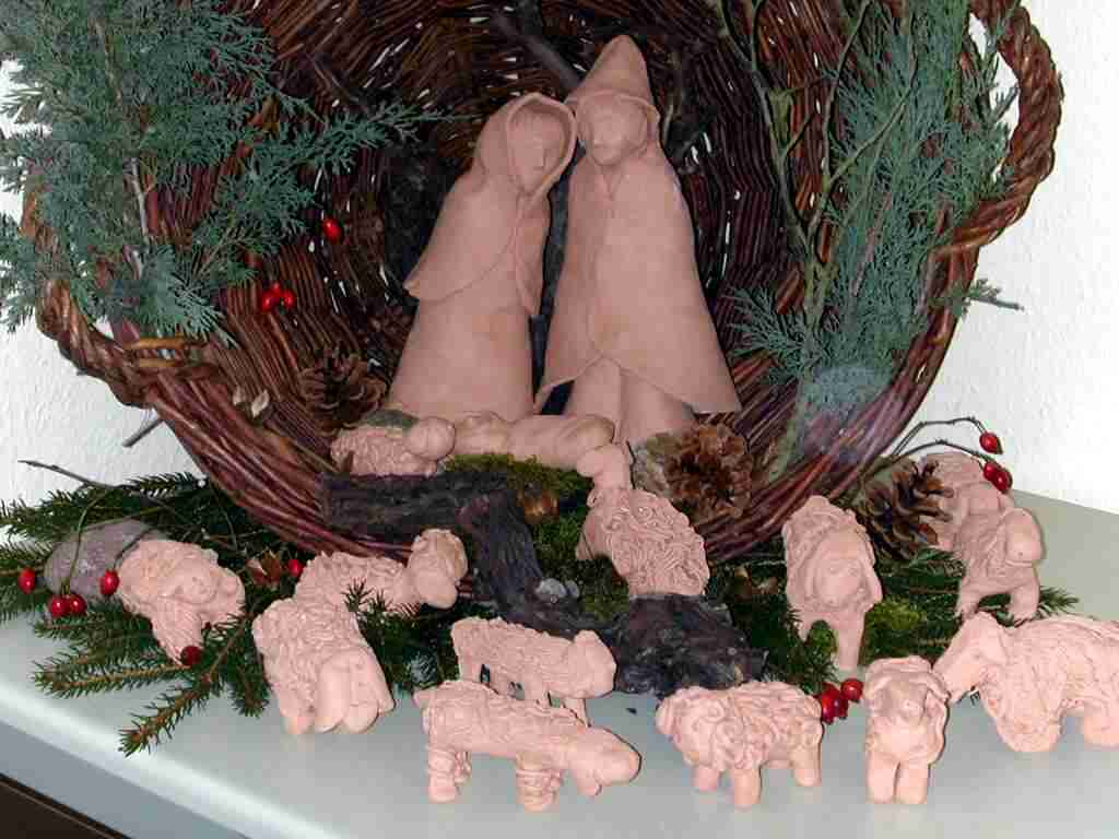 Eine Arbeit der AG "Arbeiten mit Ton" (geleitet von Frau Gottert) war in der Adventszeit im Sekretariat ausgestellt. Der Adventskranz in der Eingangshalle wurde auch dieses Jahr wieder gestiftet von der Gärtnerei Christoffel. In der Eingangshalle hatte die SV mit Herrn Faul einen Christbaum hergerichtet. Herzlichen Dank!