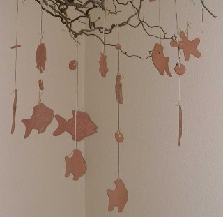 Die Keramik-AG von Frau Gottert gestaltete ein Mobile aus Fischen, Muscheln, Seesternen und Quallen, das im Sekretariat zu bewundern war.