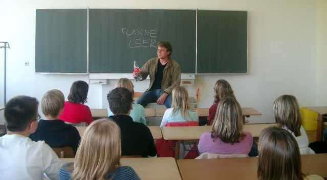 Was Alkoholsucht aus einem Menschen machen kann, mit welchen Lügen und Selbsttäuschungen er sich durch seinen Alltag bewegt, wurde den Schülerinnen und Schülern der 8. Klassen des Leibniz-Gymnasiums im Jugendtheaterstück "Flasche leer" eindrucksvoll demonstriert. Schauspieler Rainer Furch spielte im Rahmen des Mobilen Jugendtheaters vom Pfalztheater Kaiserslautern vor Schülerinnen und Schülern der 8. Klasse einen Monolog zum Thema Alkohol das Stück "Flasche leer" von Thilo Reffert. Eine Fortsetzung des Berichts von Frau Pohmer, die zusammen mit Frau Brinkop-Walter als Fachlehrerinnen für Deutsch die Veranstaltung betreuten, findet man [hier].