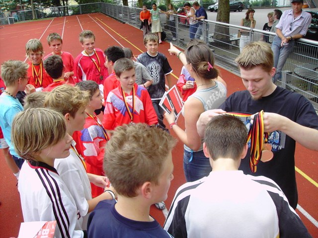 27.09.04: Leichtathleten des Leibniz-Gymnasiums im Bundesfinale erfolgreich