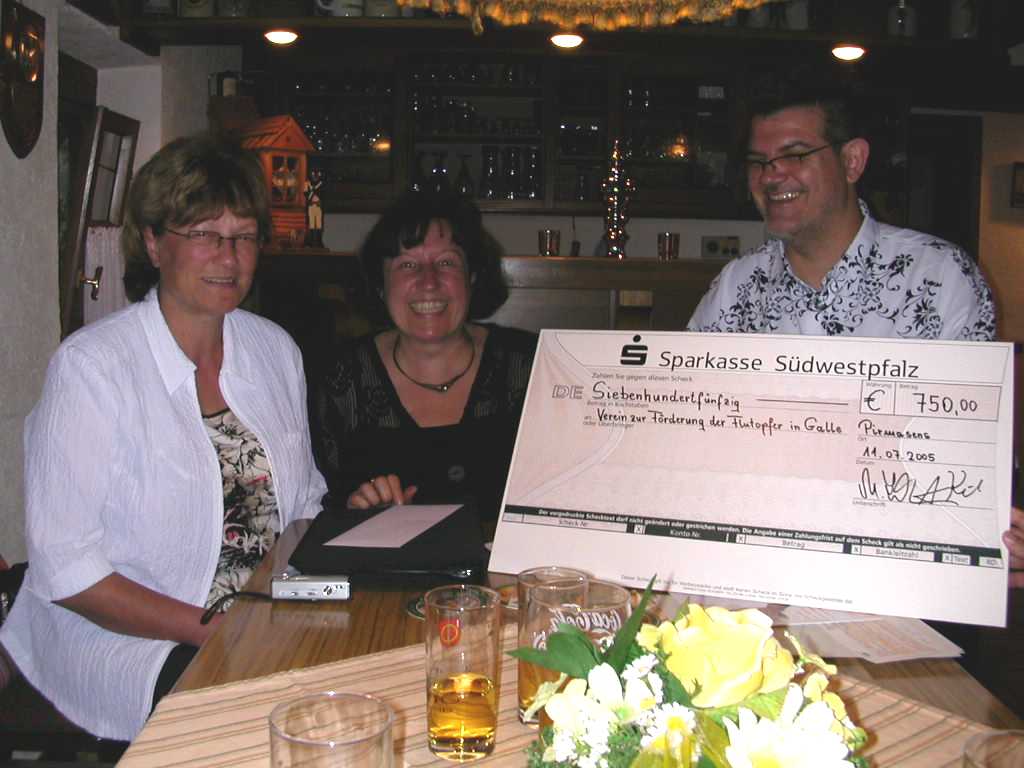 Der Vorsitzende des Vereins der Freunde des LGP, Michael Luba, übergab einen Scheck in Höhe von 750 Euro an den Verein zur Förderung und Unterstützung der Flutopfer in Galle (Sri Lanka) e. V.. Die Vorsitzenden des Flutopferhilfevereins, Frau Anneliese Woll und Frau Inge Kopp nahmen die Spende bei einem Treffen im Grenadiershäuschen in der Kaffeegasse entgegen.