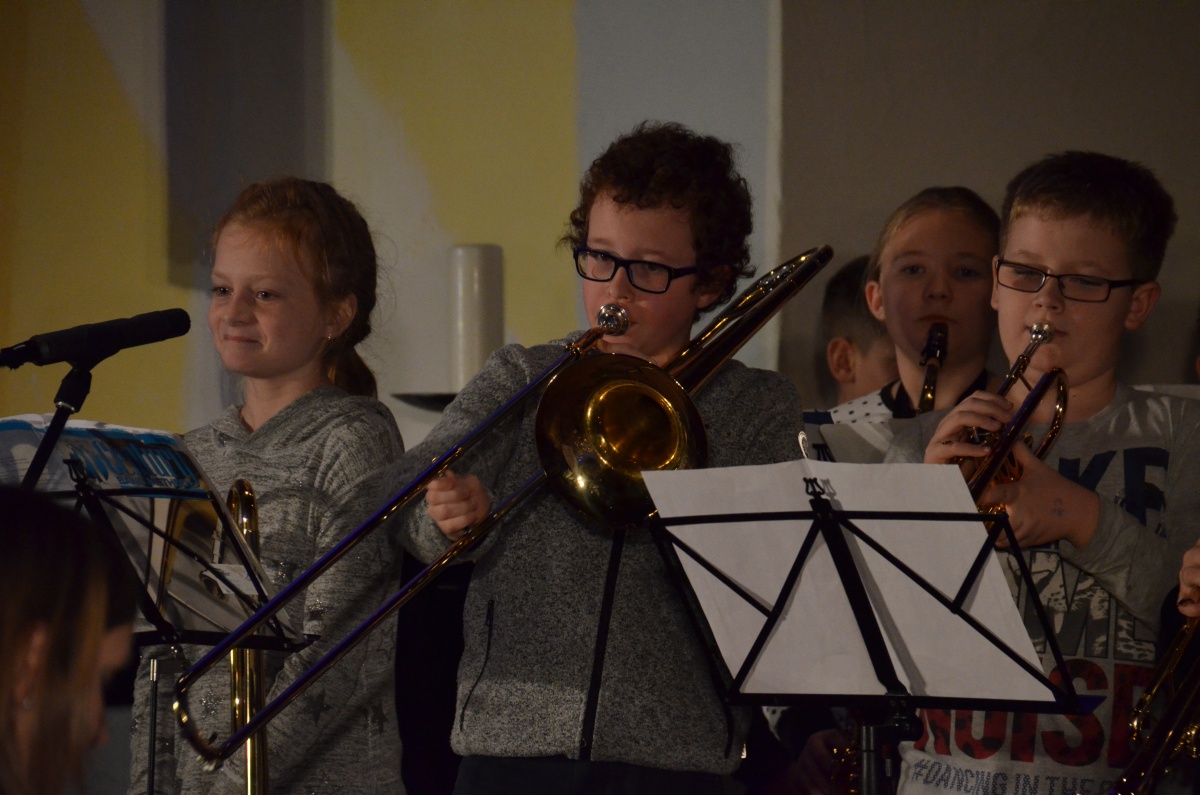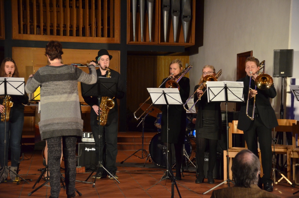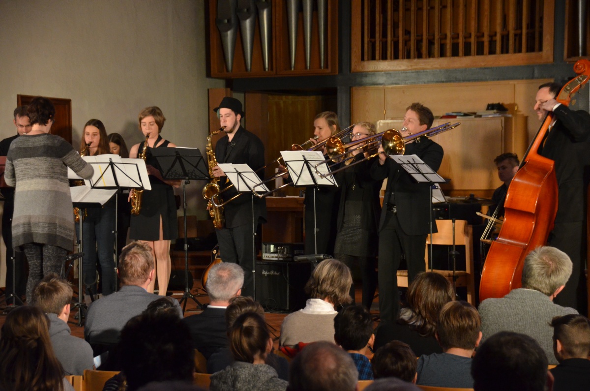 In der ersten Konzerthälfte hatte auch die Bigbandklasse ihren großen Auftritt: Beeindruckend zeigten sich die Fortschritte der Jungmusiker besonders in den Solo-Passagen der Stücke „C-Jam Blues“ und „Good Time“.