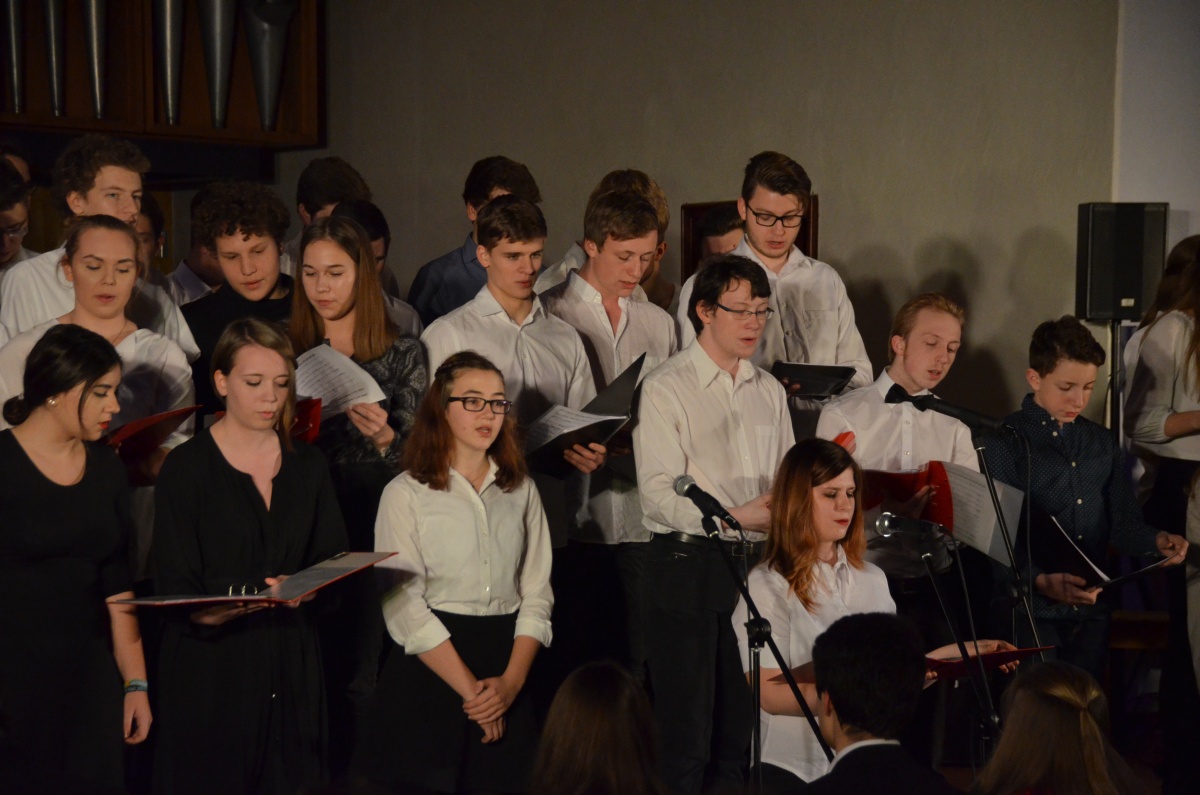 Beim Kammermusikabend 2017 konnte sich das Publikum in der vollbesetzten Johanneskirche vor allem an den Darbietungen der verschiedenen Musik-AGs und der Projekte am Leibniz-Gymnasium erfreuen. Den Auftakt machte das Orchester mit einer schwungvollen Filmmusik. Nach der Begrüßung, bei der sich Herr Kallenbach für das Engagement aller Beteiligten und den Einsatz der Fachschaft Musik bedankte, ging es weiter mit Medleys aus dem Repertoire der Bands Coldplay und Journey.