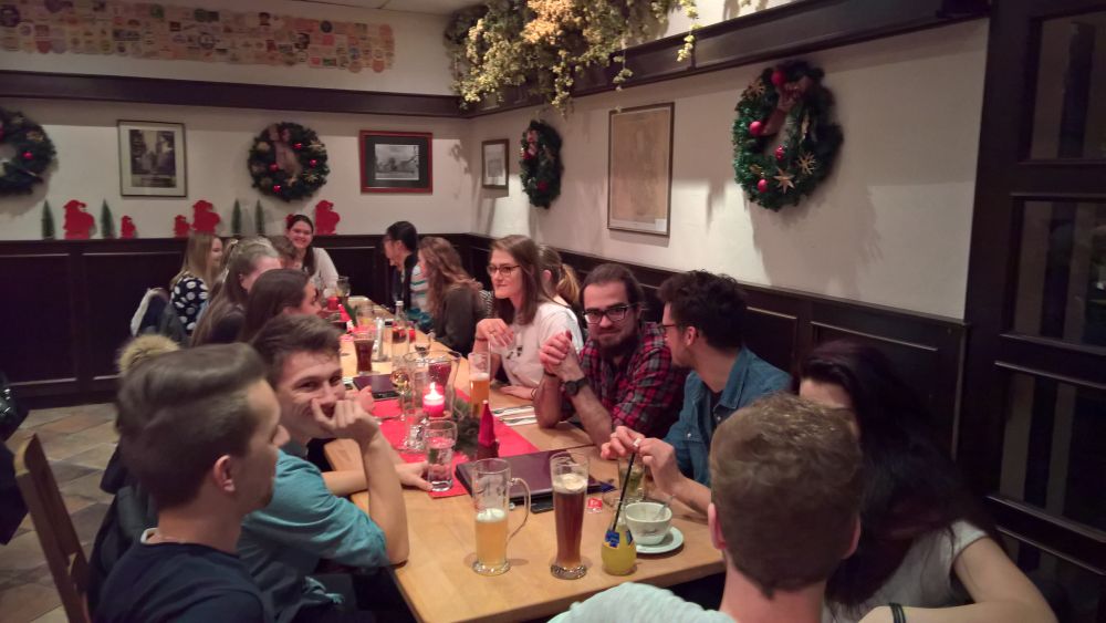 Am 27.12.2017, dem „3. Weihnachtsfeiertag", fand das Treffen der ehemaligen Schüler des Leibniz-Gymnasiums statt. Wie es inzwischen zu einer schönen Tradition geworden ist, trafen sich die Ehemaligen verschiedener Abiturjahrgänge (dieses Mal 1975-2017) im Nebenzimmer von Kuchems Brauhaus. Die Resonanz war auch in diesem Jahr so beachtlich, dass die dort reservierten Plätze gar nicht ausreichten und „angebaut" werden musste.