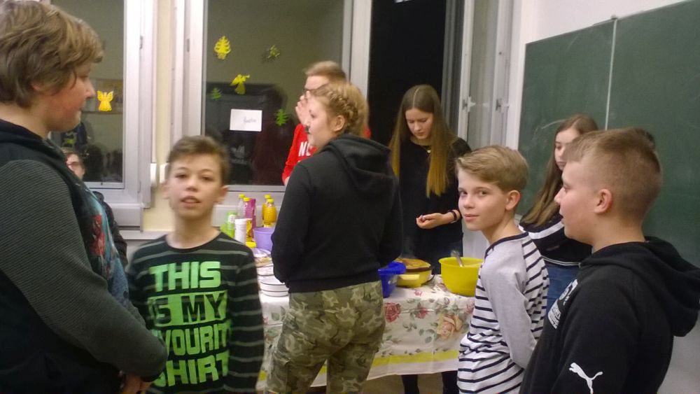 Der Fachbereich Französisch bedankt sich insbesondere bei den Helferinnen und Helfern, die (u.a. durch das fleißige Anrühren des Crêpes-Teiges) zum Erfolg des Abends beigetragen haben.