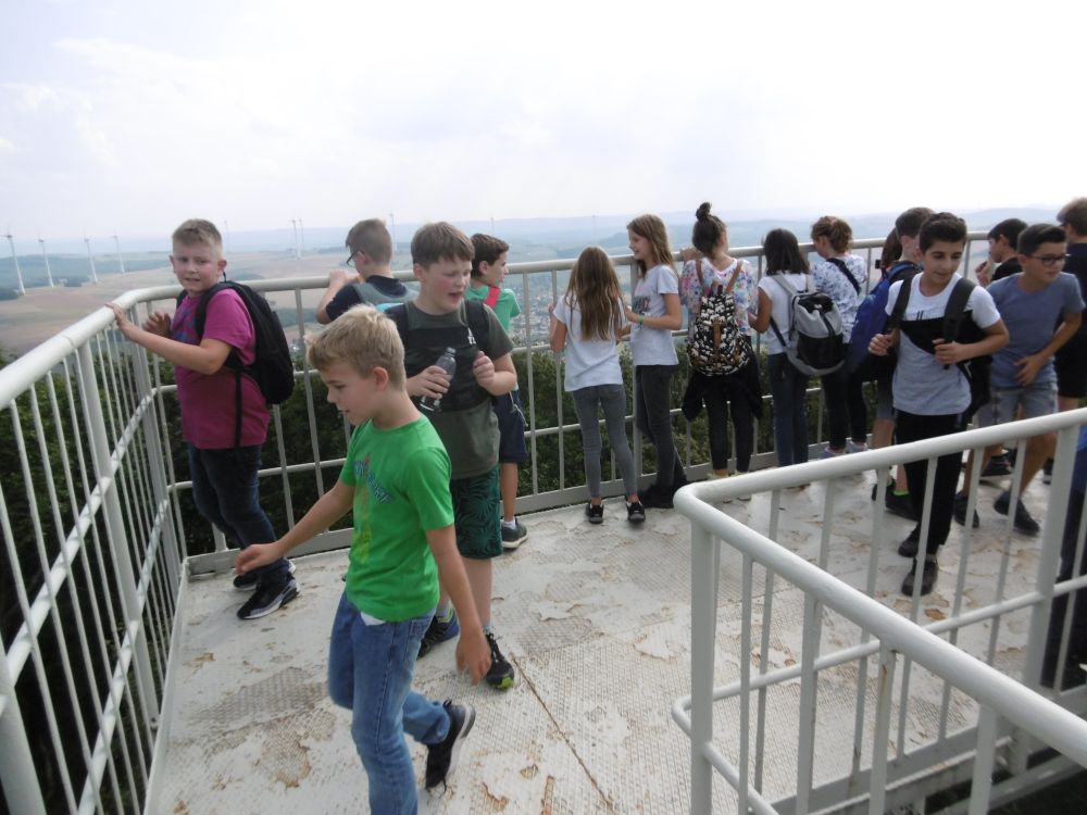 Das Wetter zeigte sich am ersten Tag von seiner sommerlichsten Seite, so dass wir bei der Wanderung zum Aussichtsturm auf dem Selberg keinen Regen befürchten mussten. Auch das Kalkbergwerk am nächsten Morgen wurde trockenen Fußes erreicht. Nach der obligatorischen Fahrt mit der Grubenbahn erfuhren wir viel über die Arbeitsweise im Stollen. Die Schülerinnen und Schüler verfolgten aufmerksam die Erklärungen zum Abbau und der Verarbeitung des Kalksteins und stellten dann auch fest: "So viel Arbeit für so wenig Geld!"