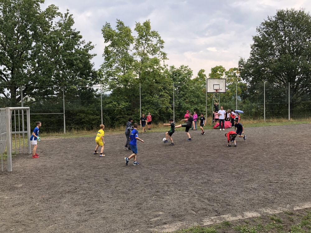 Leider hatte der Wettergott für den Nachmittag Regen angesetzt, aber ein echter Fußballer lässt sich davon nicht beirren. Das Fußballturnier unter Leitung von Herrn Mathes fand trotzdem statt.