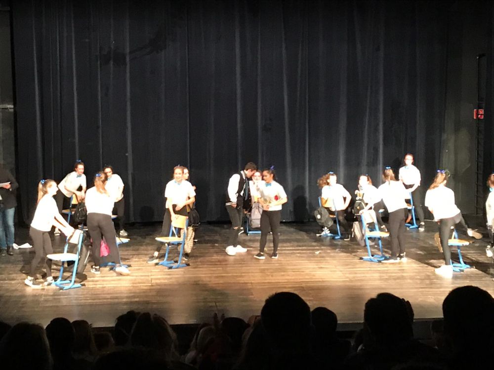 Gegen 16 Uhr wurden wir dann abgeholt für unseren Auftritt. Nach einer kurzen Wartezeit vor dem Saal wurden wir aufgerufen und konnten endlich unseren intensiv trainierten Auftritt vorführen. Nachdem alle Gruppen aufgetreten waren, hatte die Jury eine 30-minütige Beratungszeit.