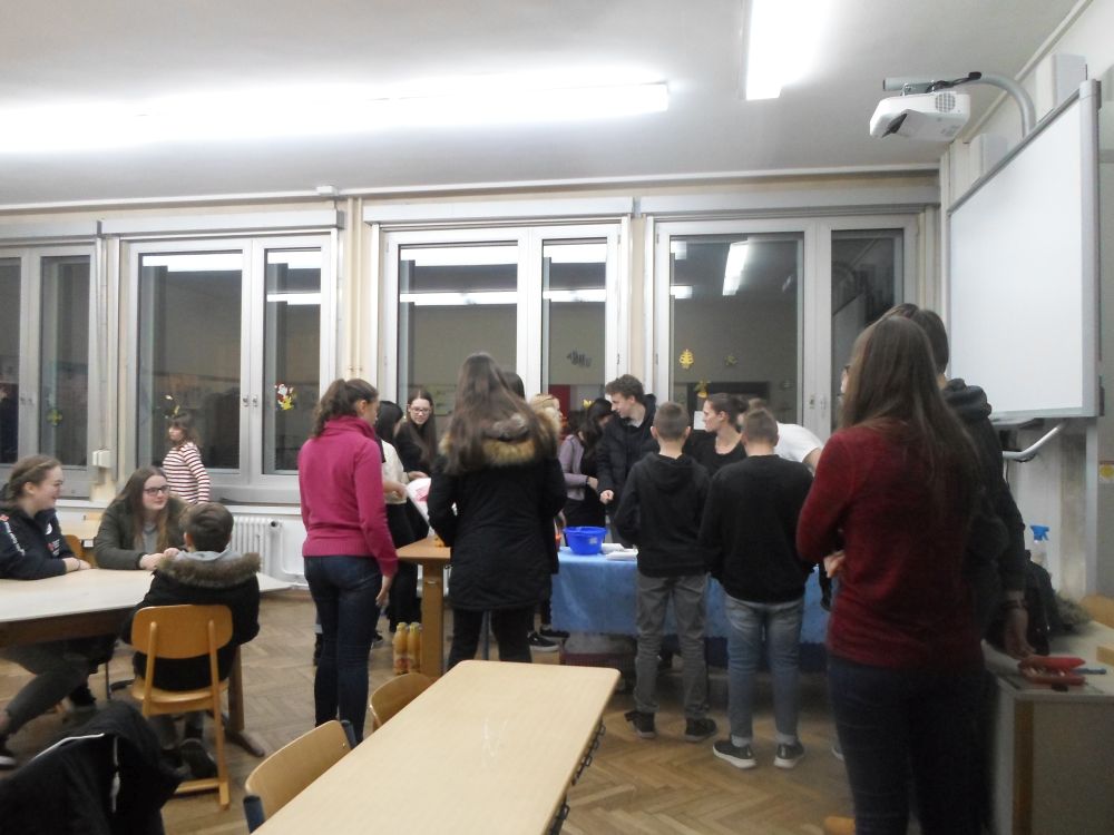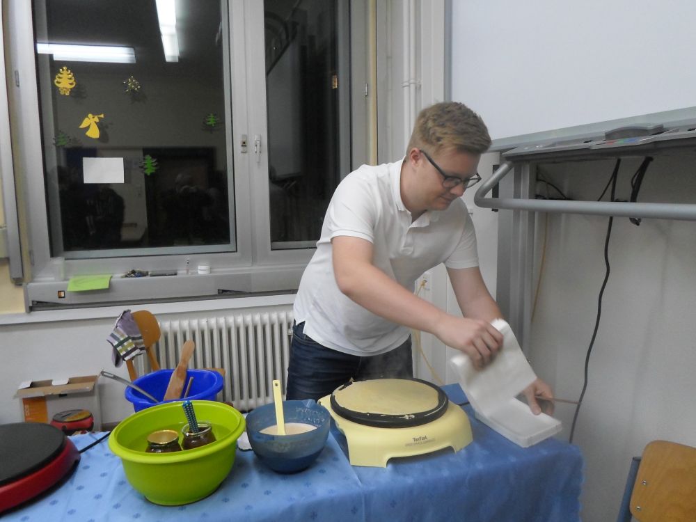 Die Fachschaft Französisch als Veranstalterin dankt den freiwilligen Helfer(inne)n aus der MSS 11 und MSS 13 für ihren tatkräftigen Einsatz mit Teig und Kelle.