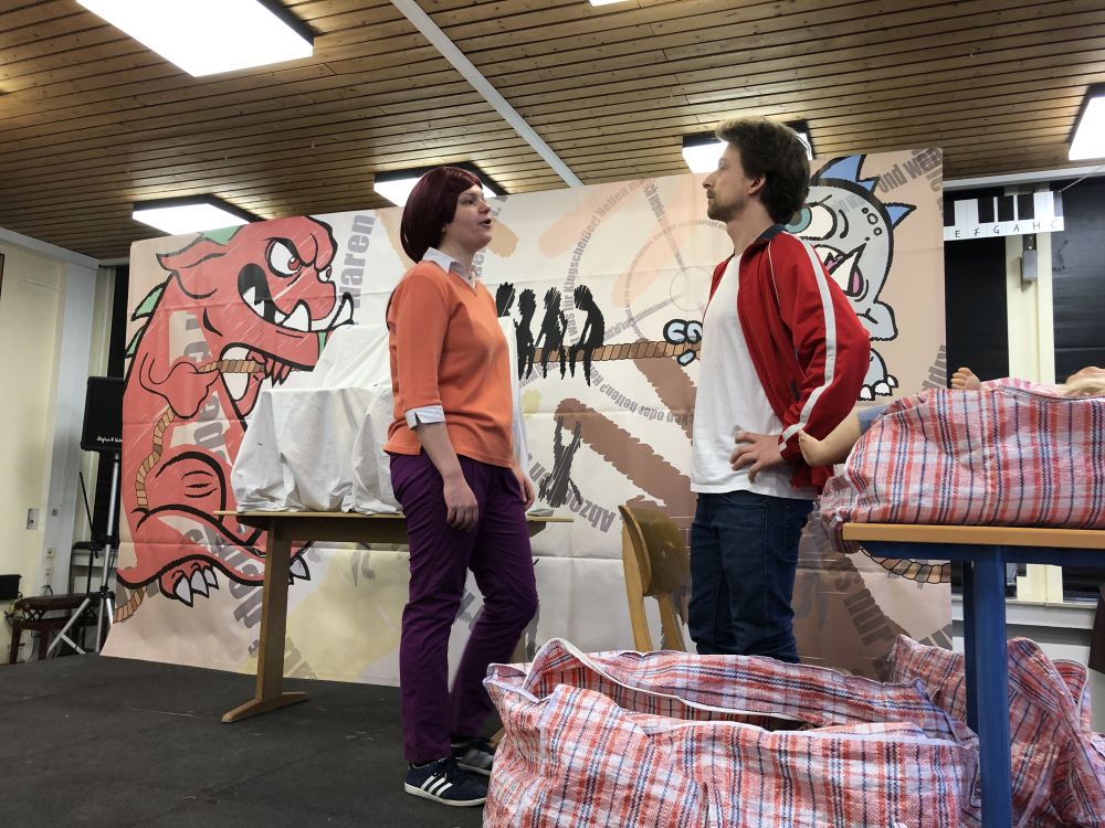 Vor den Schülern der Stufen 10 und 11 führte das Theaterensemble das sozialkritische Theaterstück "Wir waren mal Freunde" von Karl Koch auf, in dem die Auswirkungen von Rassismus und Fremdenfeindlichkeit am Beispiel einer früheren Freundesclique anschaulich verdeutlicht wurden. Die beiden Schauspieler Marie Beiderwellen und Philipp Bodner stellten die verschiedenen Figuren überzeugend dar und gestalteten das im Stil einer Kriminalgeschichte dargebotene Geschehen sehr lebendig und authentisch.