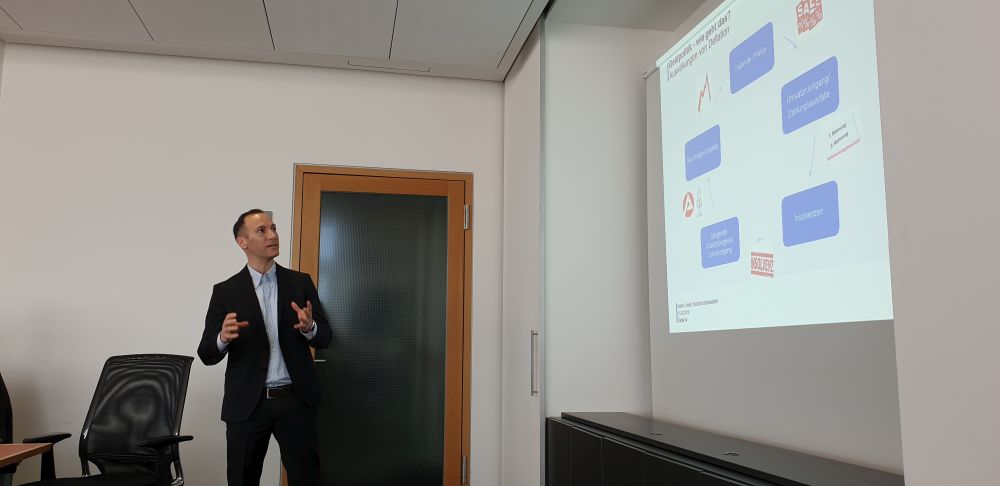Nach einer kurzen Pause mit Kaffee und Keksen folgte auch der zweite Teil der Veranstaltung, ein Vortrag über die Geldpolitik des Eurosystems. Das Eurosystem (Europäische Zentralbank + nationale Zentralbanken) hat als oberstes Ziel die Wahrung der Preisstabilität. Der Referent erläuterte, wie dieses Ziel verwirklicht wird und warum die Preisstabilität überhaupt ein erstrebenswertes Ziel darstellt. Des Weiteren wurde die aktuelle Nullzinspolitik der EZB gerechtfertigt und erklärt.