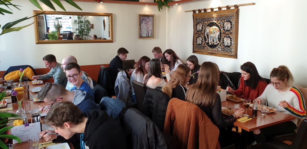 Im Anschluss an die Veranstaltung der Bundesbank begaben sich die Kurse gemeinsam in ein thailändisches Restaurant, um sich nach den beiden sehr lehrreichen und informativen Vorträgen zu stärken. Nach dem Essen hatten die Schüler noch etwas Zeit zur freien Verfügung, die sie je nach Belieben, zum Beispiel mit Shopping oder einfachem Entspannen an der Saar, in der Saarbrücker Innenstadt verbringen konnten.