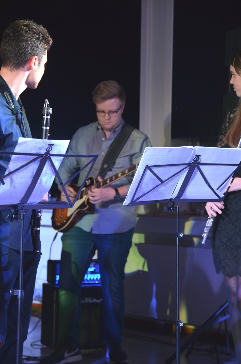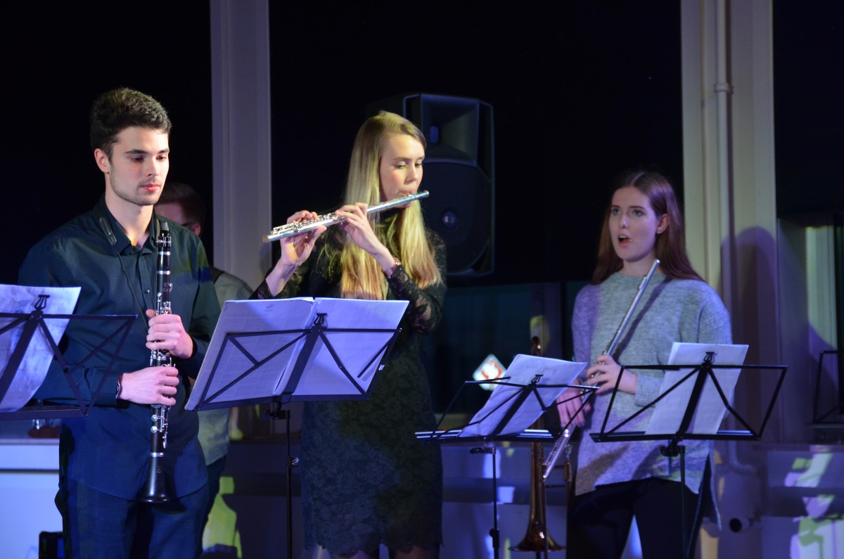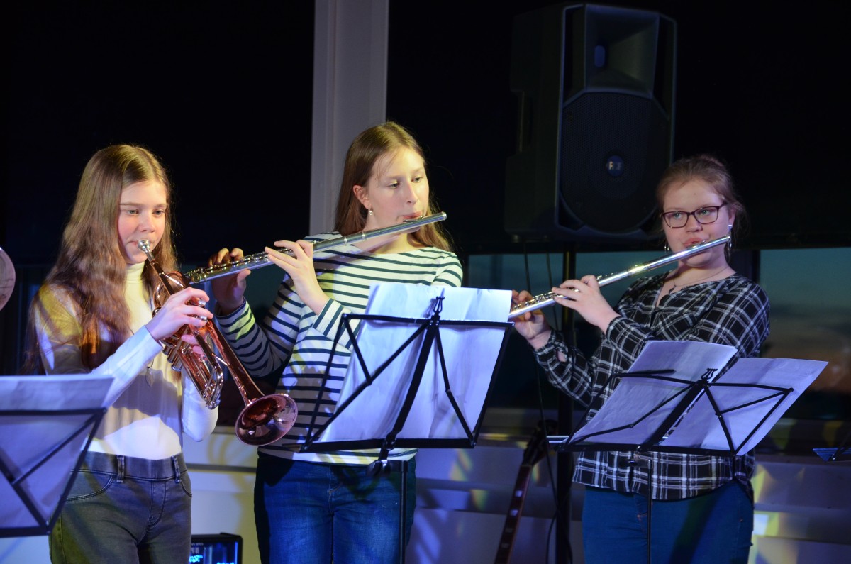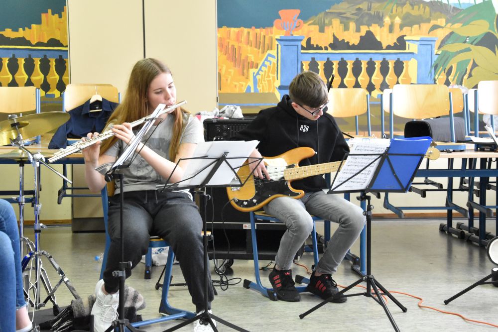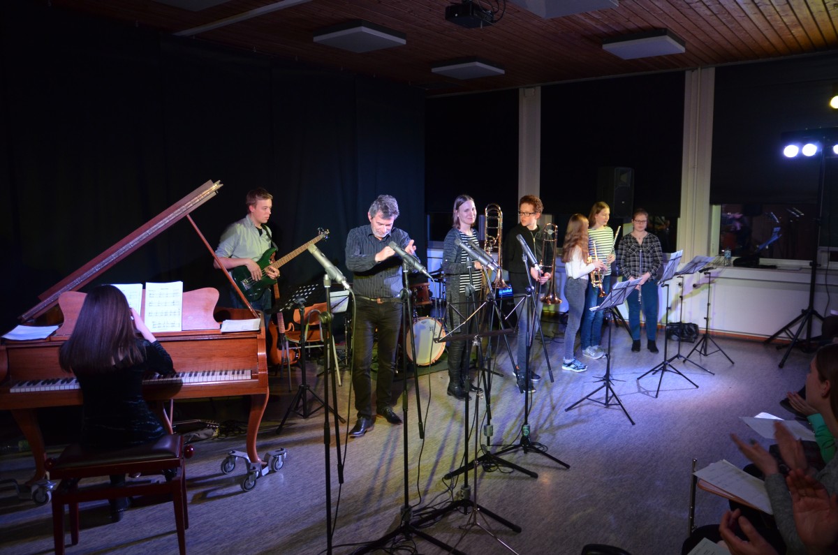 Nach eineinhalb Tagen intensiver Probenarbeit wurden die Ergebnisse einem erfreulich zahlreich erschienenen Publikum dargeboten. Jede der beiden Schülercombos präsentierte zwei Stücke, danach spielten alle gemeinsam noch "Sonnymoon for two".