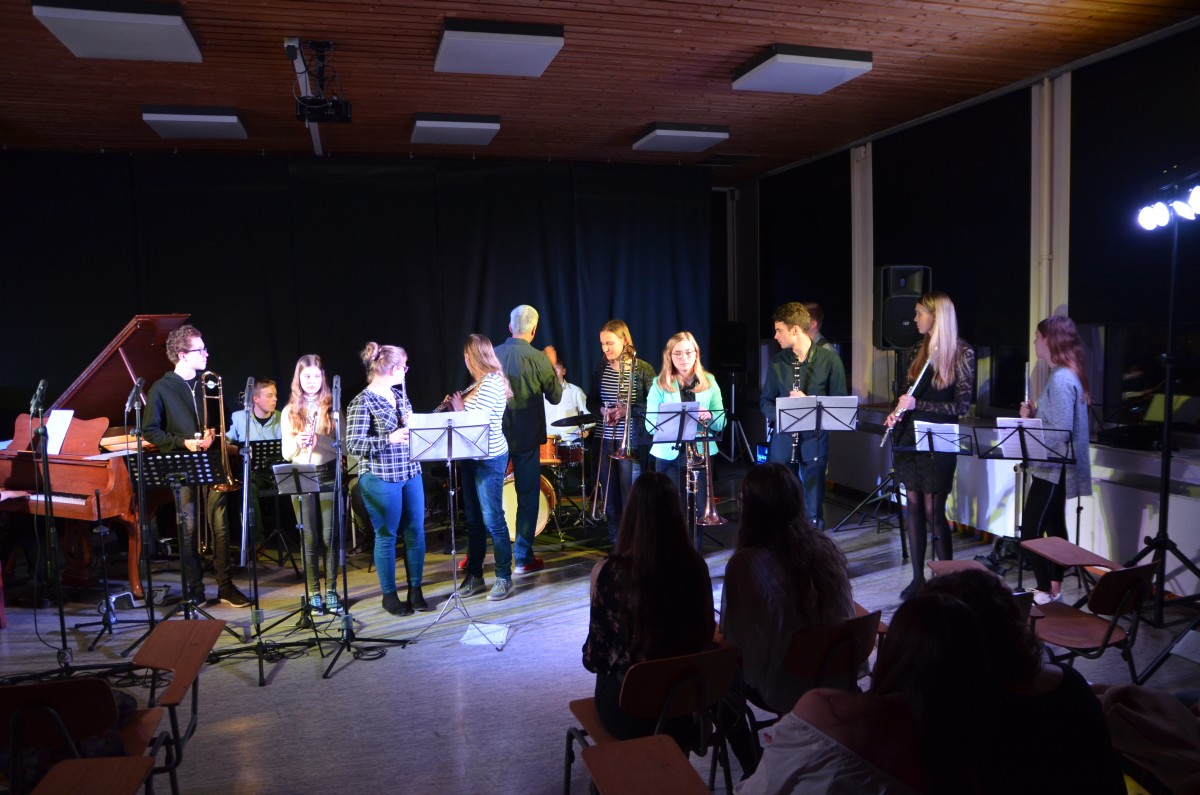 Wir bedanken uns noch einmal bei den drei Akteuren (und auch bei Maurice Croissant für die Stimmbildung mit den Sängerinnen am Samstag morgen!) und freuen uns, dass dieser Jazz-Workshop schon zum dritten Mal stattfinden konnte. Eine solche Veranstaltung ist für alle beteiligten Schüler eine Bereicherung, die sicher nur an wenigen Schulen so angeboten wird.