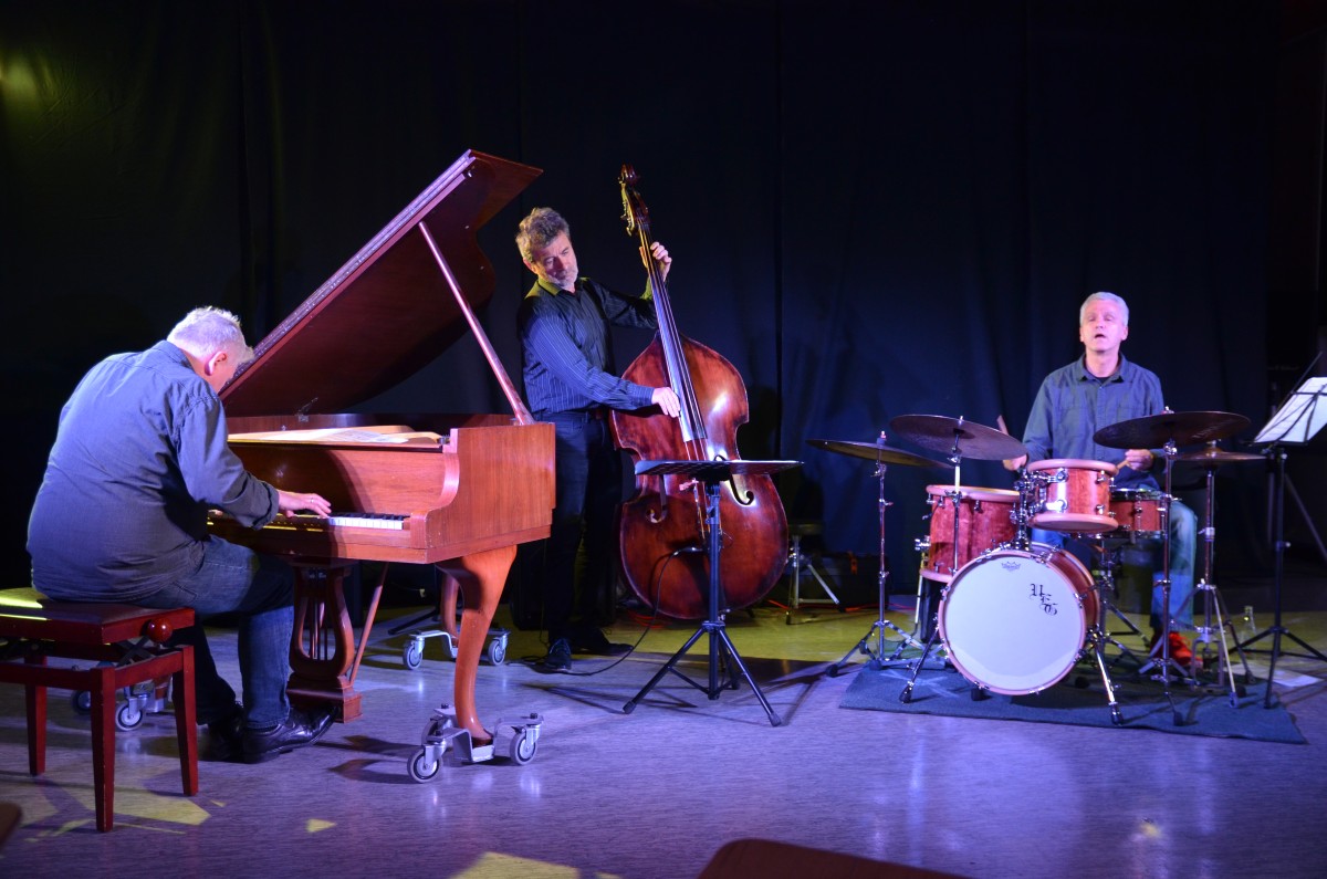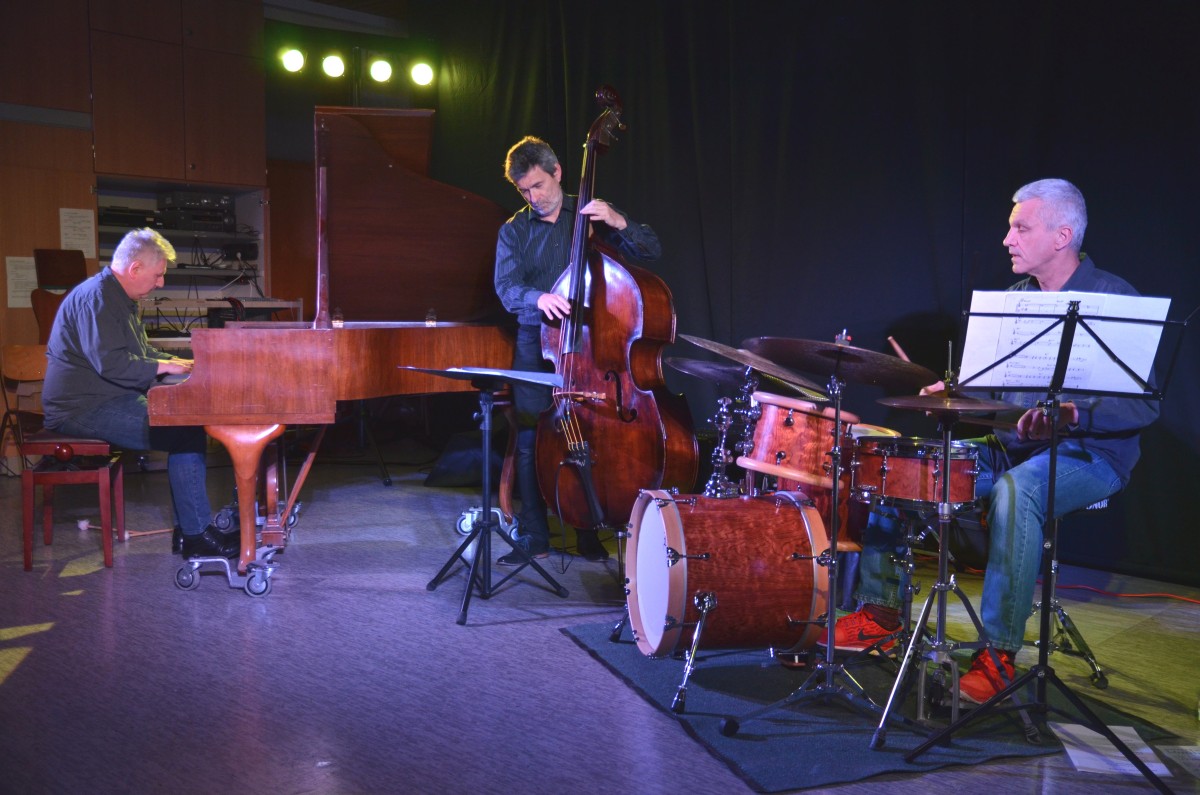Den zweiten Teil des Abends bestritt dann das Christof-Heringer-Trio. Die drei Instrumentalisten Christof Heringer (Klavier), Matthias Wolf (Bass) und Uli Gessner (Schlagzeug) überzeugten und begeisterten das Publikum mit sieben ausgewählten Stücken, die stilistisch eine große Abwechslung boten. Christof Heringer, aus dessen Feder diese Stücke stammen, mischt verschiedene Jazz-Stile mit Einflüssen aus klassischer Musik, aber etwa auch mit orientalisch angehauchten Klängen. Langeweile kommt da beim Zuhören niemals auf! Matthias Wolf betonte, dass fast alle Stücke an diesem Abend zum ersten Mal öffentlich gespielt wurden.