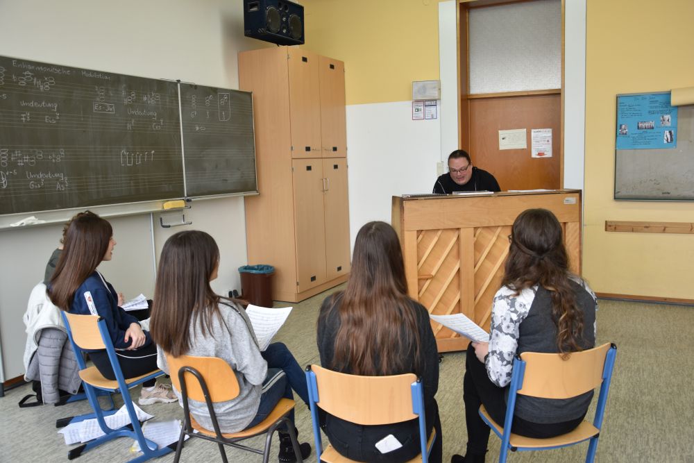 In lockerer Atmosphäre wurden die Schülerinnen von den drei engagierten Mitgliedern des Christof-Heringer-Trios angeleitet und zu ansprechenden Soloimprovisationen motiviert. Eine solche Improvisation erfordert vor allem Mut: Man muss etwas spielen, was nicht in den Noten steht und kann sich lediglich an einem Harmonieschema orientieren. Hauptsache, man traut sich! Der Bassist Matthias Wolf fasste das so zusammen: "Es kann ja sein, dass einem nichts einfällt, aber dann spielt man trotzdem."