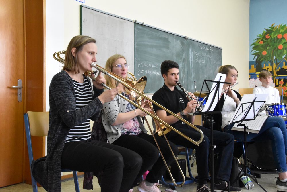 Vom 15.3.19 bis 16.3.19 fand der Jazzworkshop mit dem Christof-Heringer Trio statt. Zum dritten Mal haben wir uns zwei Tage mit dem Thema Jazz und der damit verbundenen Improvisation beschäftigt. Mit viel Geduld und auf uns übergreifender Begeisterung, leiteten die drei Profi-Jazzmusiker zwei Tage voller Proben in unseren Combos. Trotz kurzweiligen Überforderungserscheinungen waren die Ergebnisse mehr als zufriedenstellend und weckten in vielen jungen Musikern die Freude am Jazz.