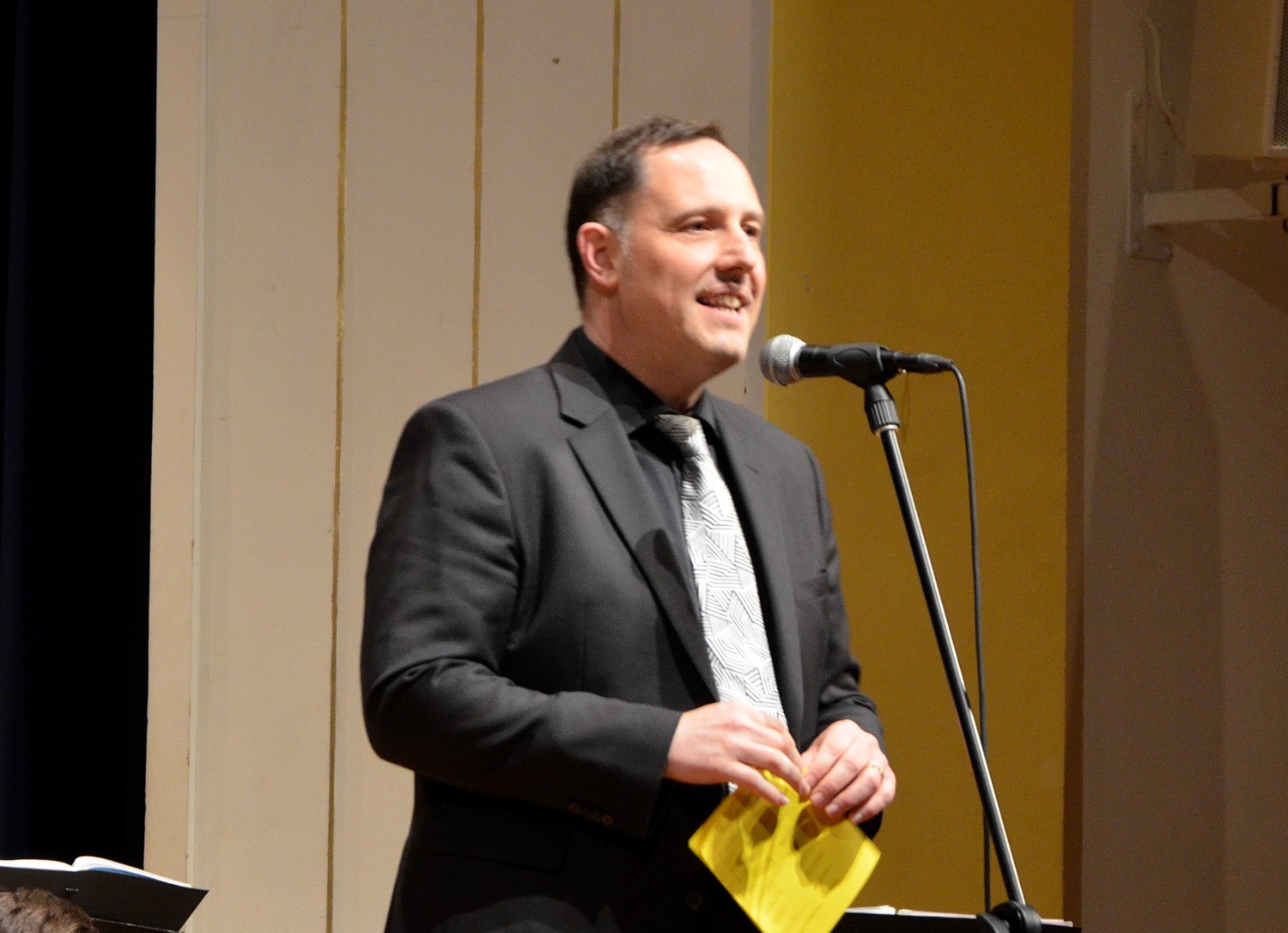 Die Begrüßungsrede übernahm ausnahmsweise Herr Gutmann, da Herr Mohr erkrankt war. Unter Bezugnahme auf die von der Bigband gespielte „Ode an die Freude" gratulierte er unter anderem Philipp Bergner, der wenige Stunden zuvor den Landeswettbewerb „Jugend debattiert" gewonnen hatte.