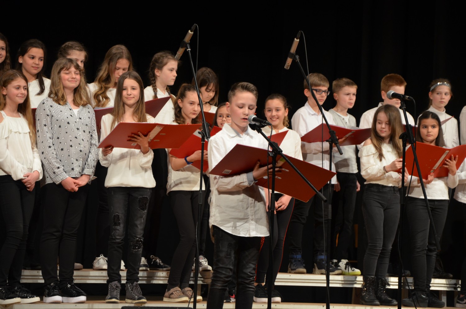 Nach der Rede gab es wieder Musik durch unseren Chor der Klassen 5-7. Mit modernen Liedern, wie „Alles nur geklaut", hoben sie die Stimmung und begeisterten das Publikum.