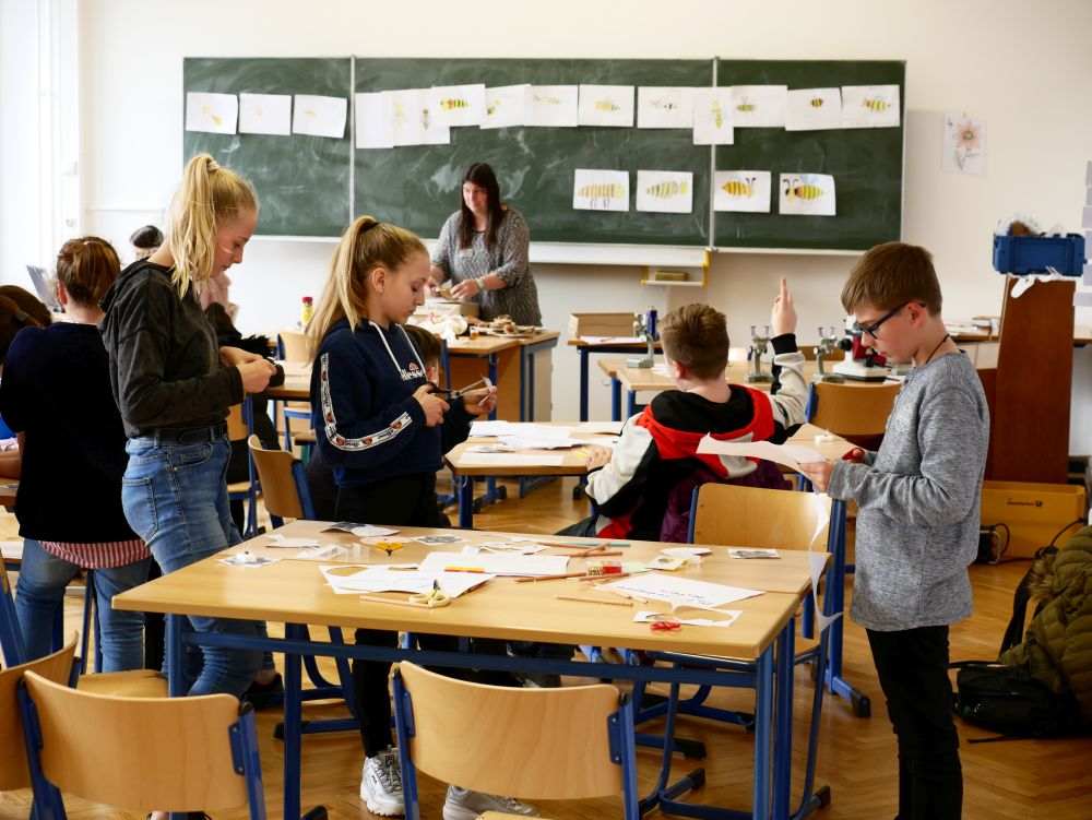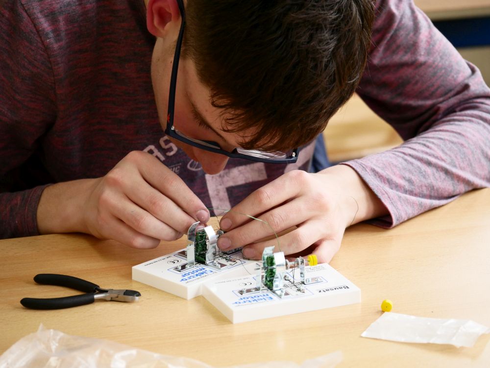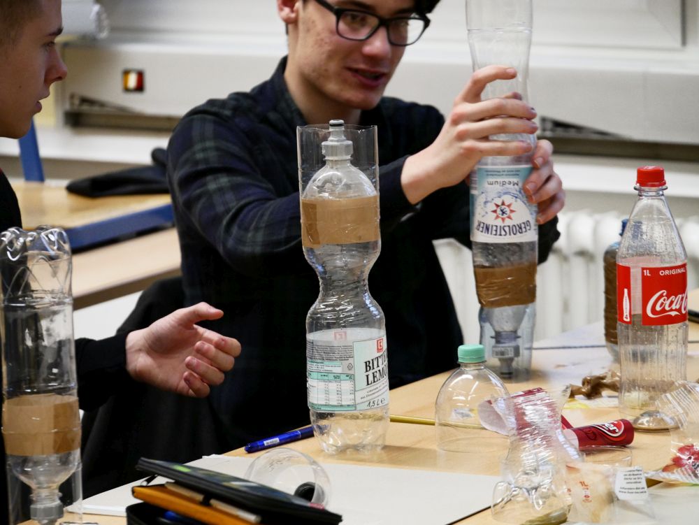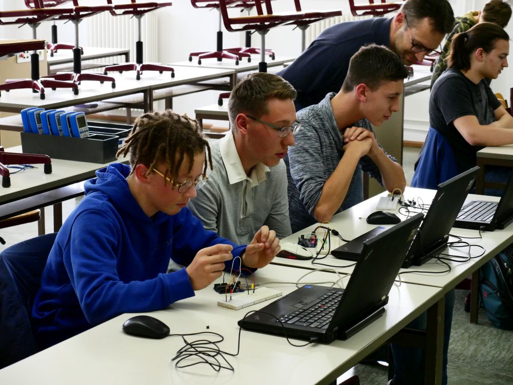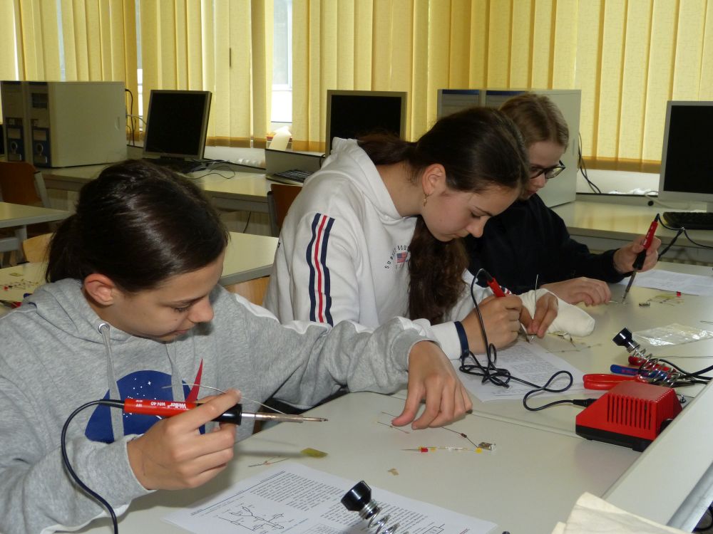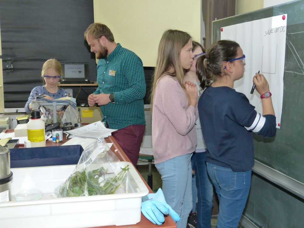 So bestand beispielsweise die Möglichkeit, mit Mikroprozessoren zu arbeiten, Roboter zu bauen und zu steuern, an einer Vogelexkursion teilzunehmen, Schweineaugen zu sezieren, die eigene DNA zu isolieren und, und, und. Um 18 Uhr konnten Eltern, Geschwister, Freunde und Interessierte die Workshops besuchen und die Ergebnisse sichten. Parallel dazu konnten jüngere Schülerinnen und Schüler an einem Vortrag von Herrn Prof. Dr. Thomas Stumm von der Hochschule Kaiserslautern zum Thema „Seifenblasen" teilnehmen und die Faszination, die den bunt, schillernden Seifenblasen innewohnt und die doch so viele Fragen aufwerfen, erleben.
