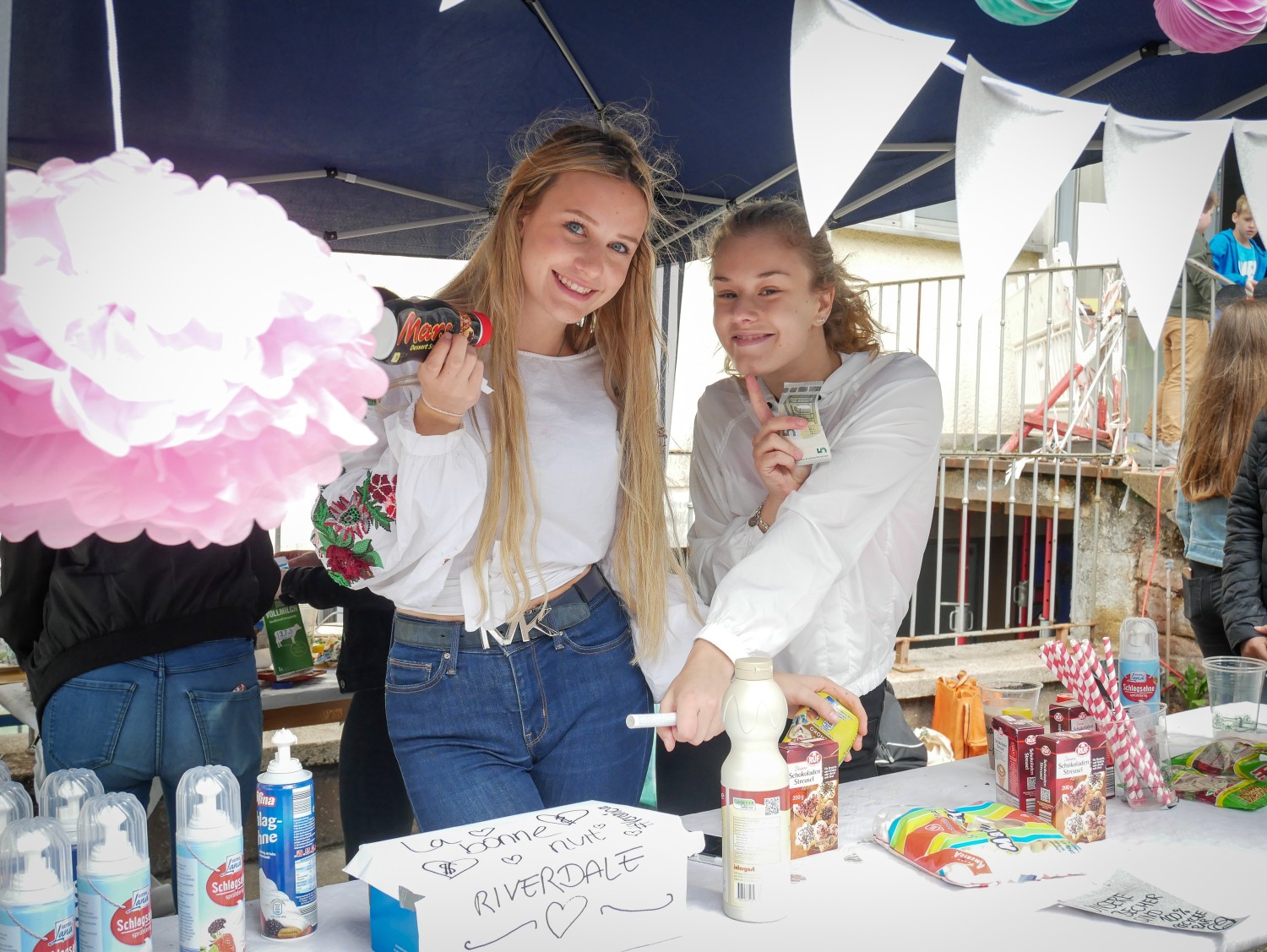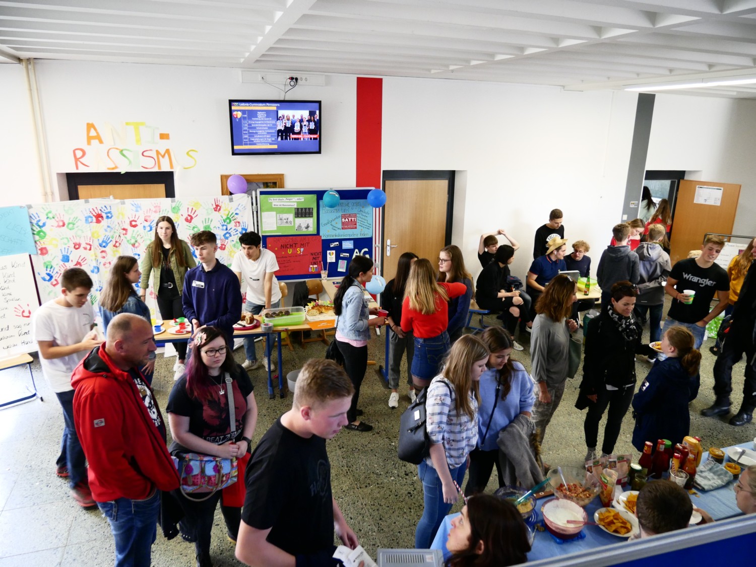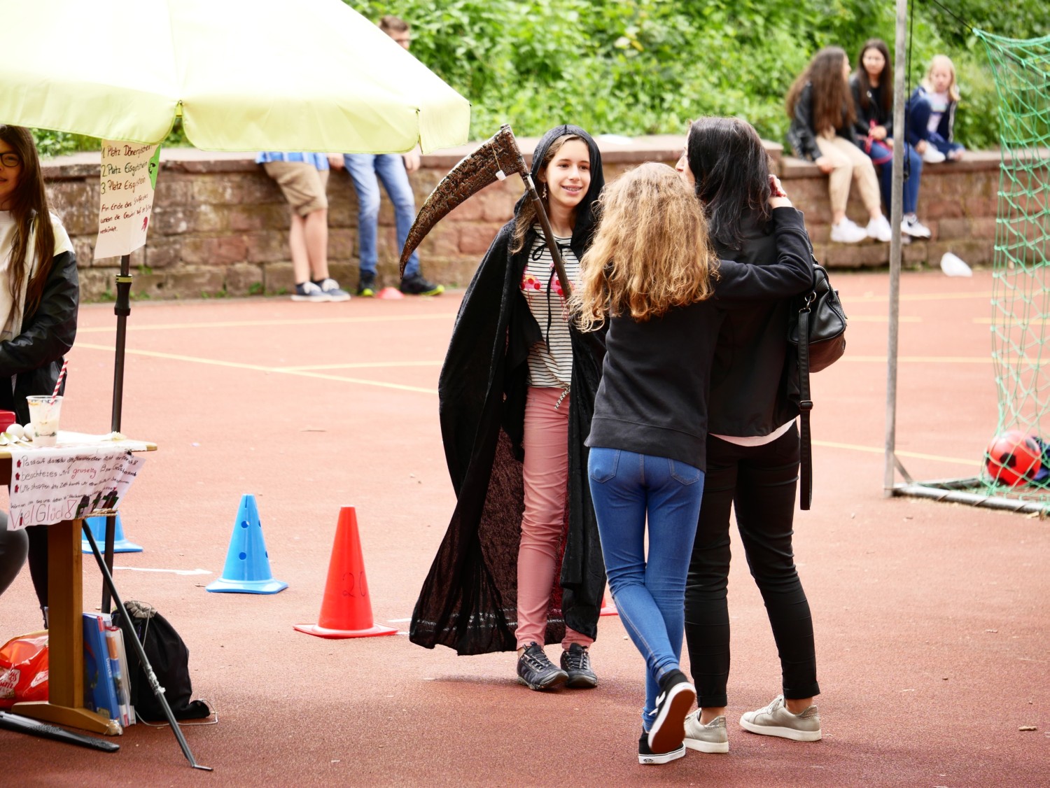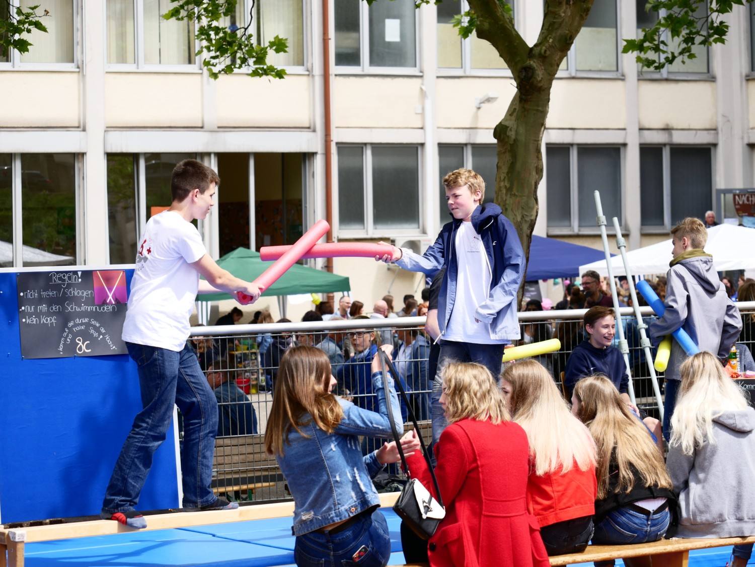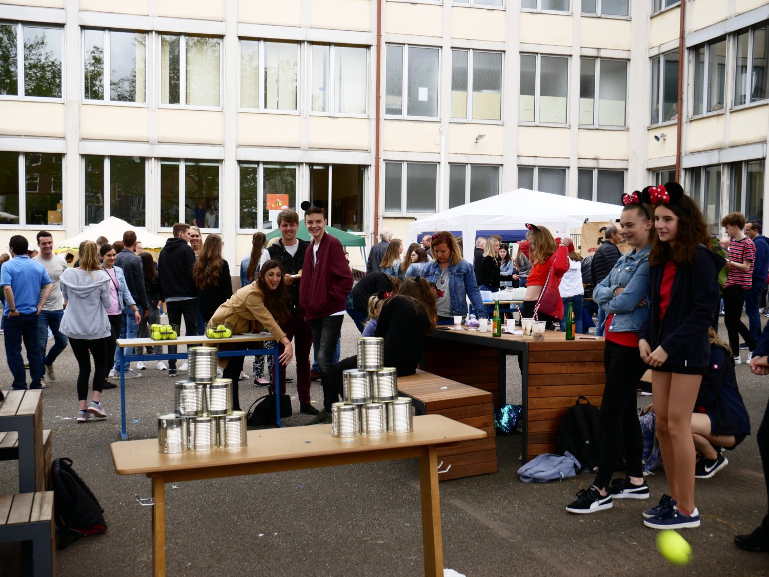 "Filme und Serien" - Unter diesem Motto fand am 15.06.2019 das diesjährige Schulfest des Leibniz-Gymnasiums statt. Die Schülervertretung (unterstützt durch unseren Hausmeister Herrn Schmitt) organisierte diesen gelungenen Tag, an dem die Schulgemeinschaft sowohl bei den Ständen und Aktivitäten als auch auf der Bühne ein attraktives Programm bieten konnte. Die einzelnen Klassen und Kurse sowie die Elternvertretung sorgten nicht nur für ein breit gefächertes kulinarisches Angebot, sondern warteten auch mit interessanten Spielen und Geschicklichkeitswettbewerben auf, sodass es niemandem langweilig werden konnte.