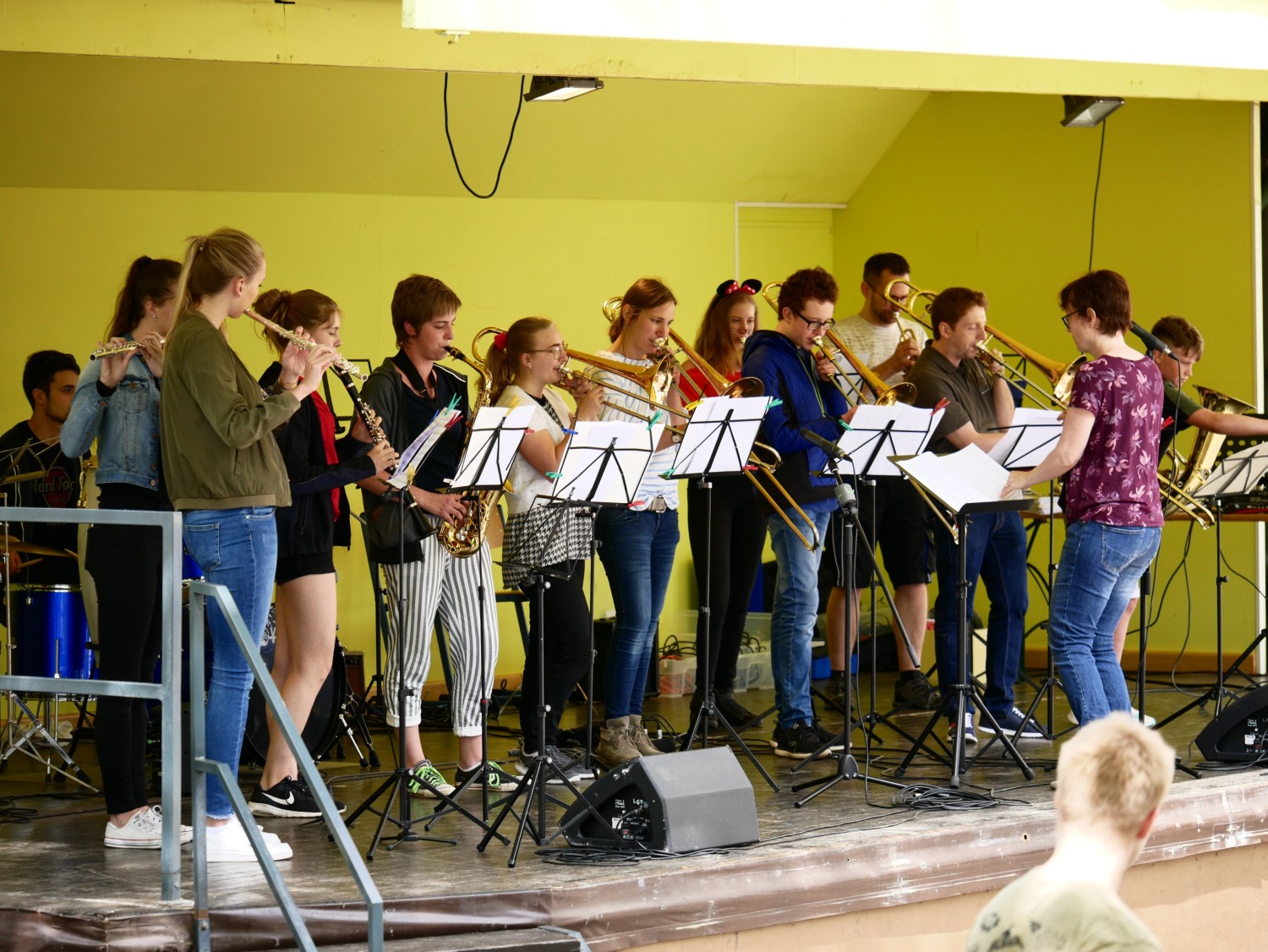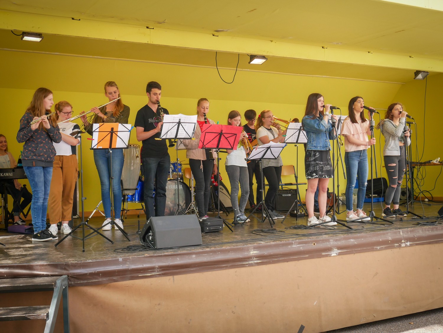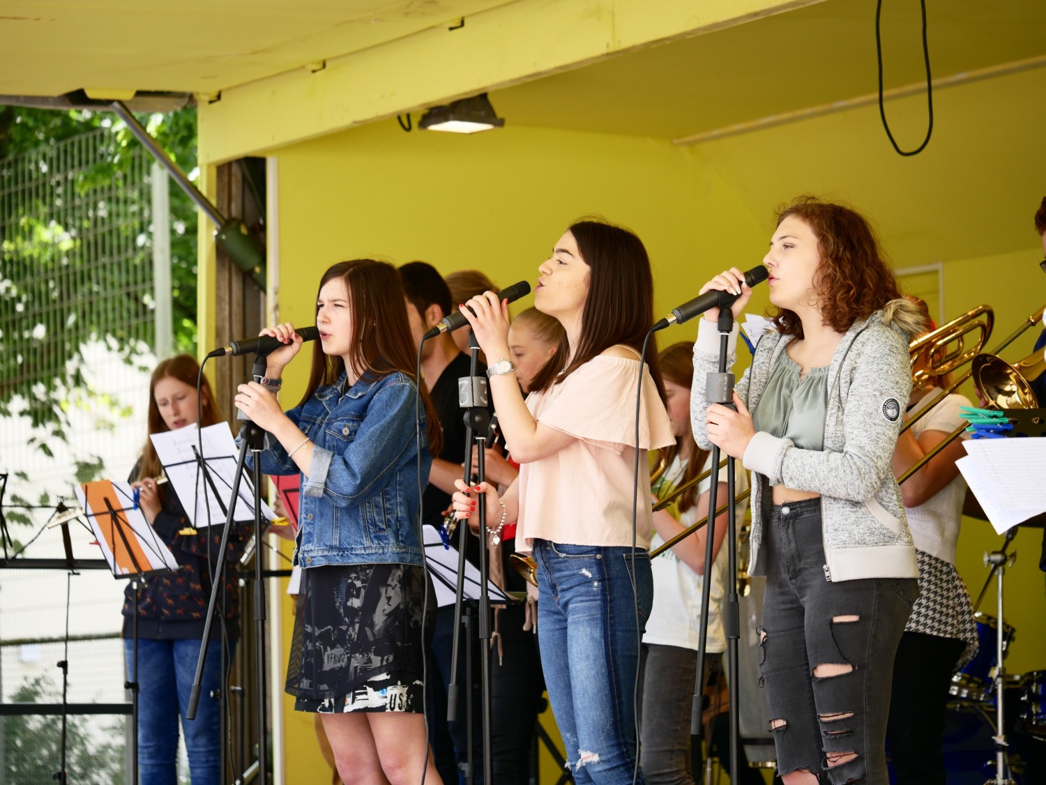 Die Bühne bot auch in diesem Jahr wieder Platz für zahlreiche Ehrungen engagierter Schülerinnen und Schüler und die Auftritte der BigBand-Klassen, der Schulband und des Schulorchesters.
