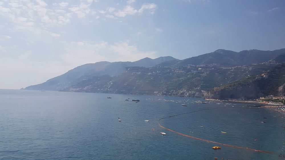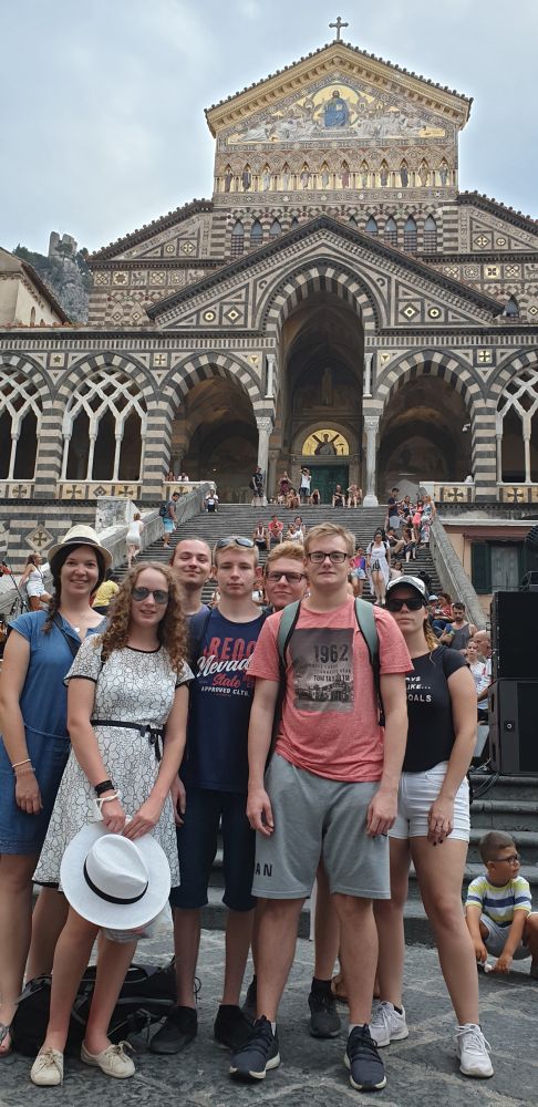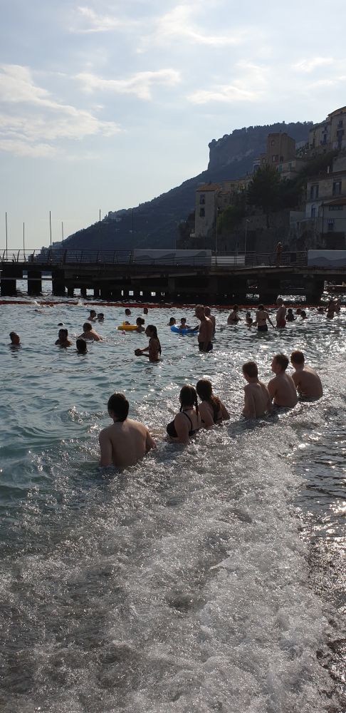 Am dritten Tag waren dann die Tempel und Ruinen von Paestum und die Amalfiküste an der Reihe. Die Busfahrt am schmalen Küstenstreifen war zwar durchaus eindrucksvoll, zehrte jedoch an uns, denn auch an diesem Tag war das Wetter gnadenlos. Umso mehr freuten wir uns auf unseren lang erwarteten Badegang am Strand von Amalfi, nachdem unser Trupp noch kurz durch die Villa Maritima geeilt war. Wiederbelebt konnten wir uns am Ende sogar noch an der Schönheit von Amalfi erfreuen.