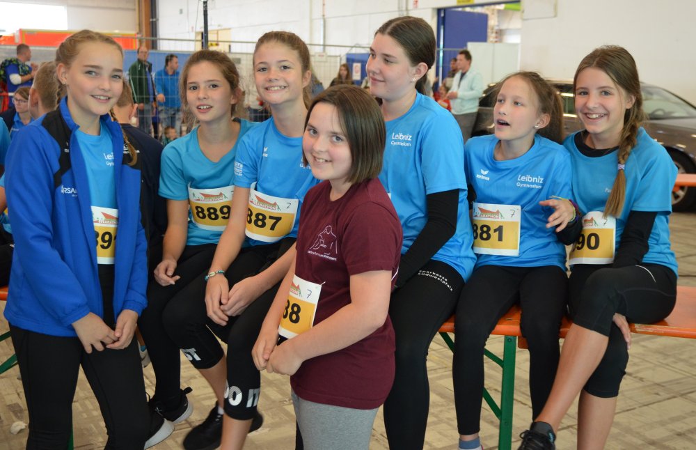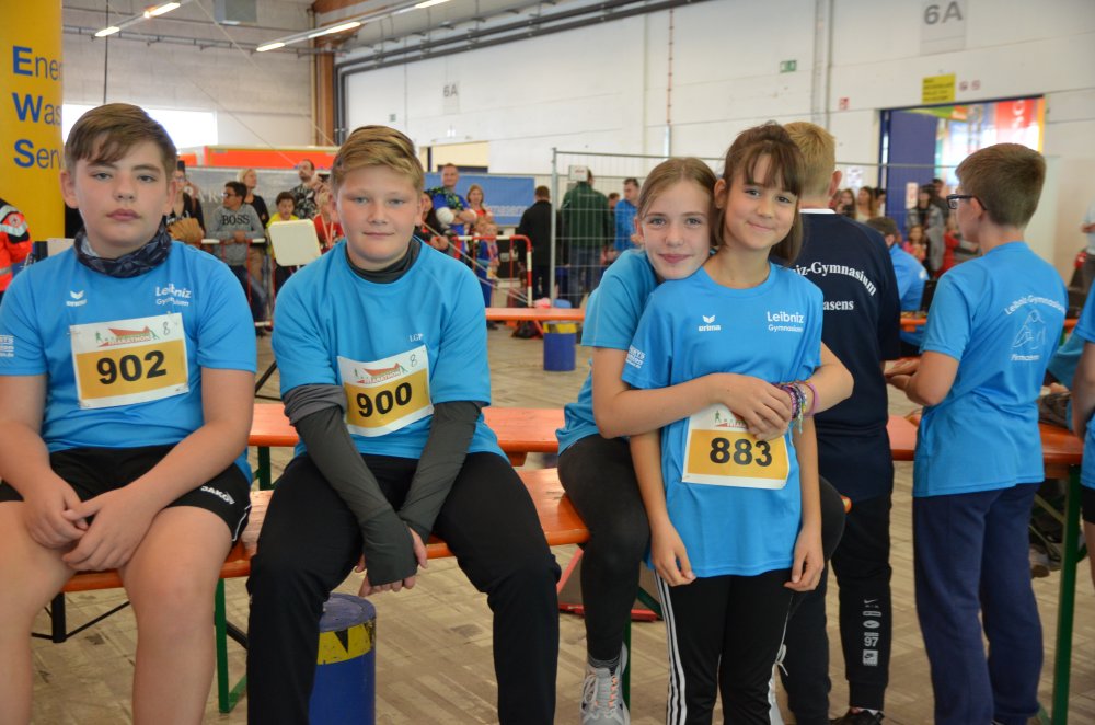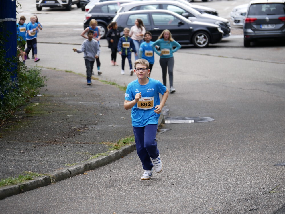 Von den weiterführenden Schulen konnte das Leibniz somit die meisten Teilnehmer an die Startlinie bringen. So waren es auch unsere schuleigenen Laufshirts mit dem "lesenden Schüler" in den Farben "navy" und "curacao", die die Laufwettkämpfe vor Ort optisch prägten.