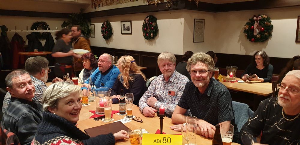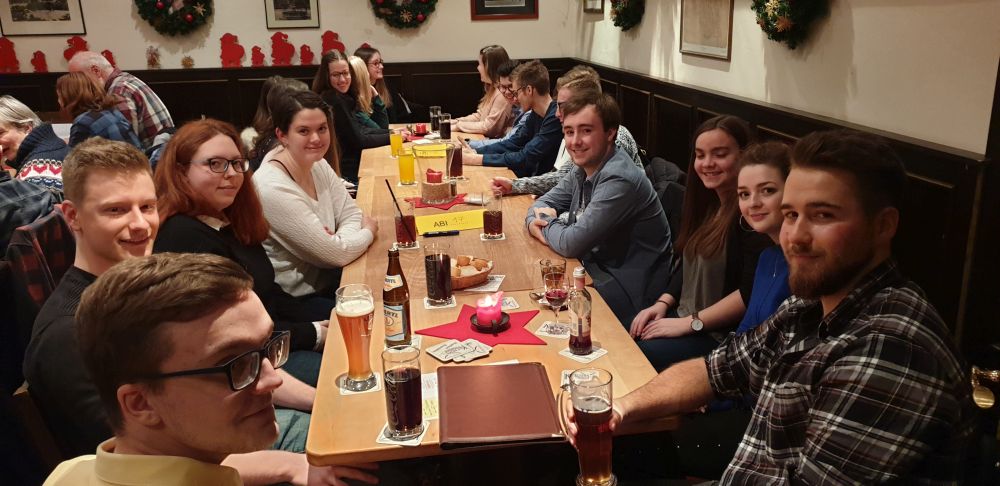 Wie jedes Jahr trafen sich junge und alte ehemalige Schülerinnen und Schüler des Leibniz-Gymnasiums am 27.12.2019 in Kuchems Brauhaus. In weiser Voraussicht hatte der Organisator, Herr Rößler, auch noch Plätze außerhalb des Nebenzimmers reserviert, das ansonsten wieder zu klein für die große Zahl der Teilnehmer gewesen wäre. Erwartungsgemäß stark vertreten waren die aktuellenAbiturienten und Abiturientinnen, aber auch viele bereits seit langem etablierte Jahrgänge nutzten die Gelegenheit zu einem kleinen inoffiziellen Klassentreffen.