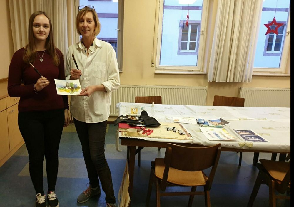 Am 18.1.20 trafen wir uns um 9:30 Uhr in Frau Fünffingers Atelier in Hainfeld. Zuerst erklärte sie uns einige Grundlagen über die Aquarellmalerei und dann ging es auch schon mit der praktischen Arbeit los.
