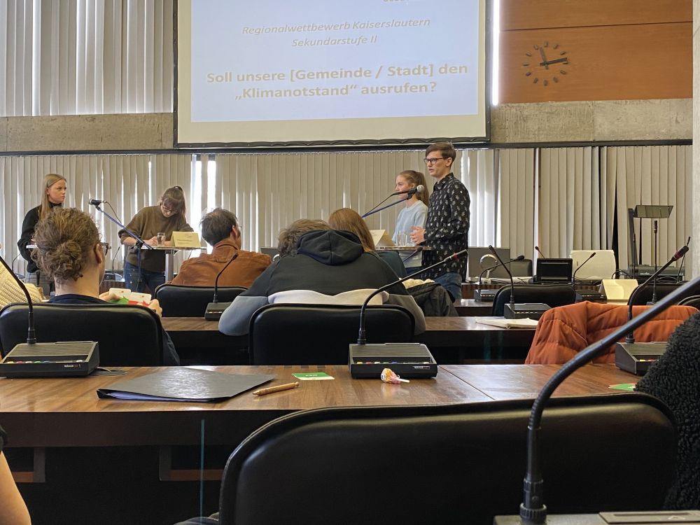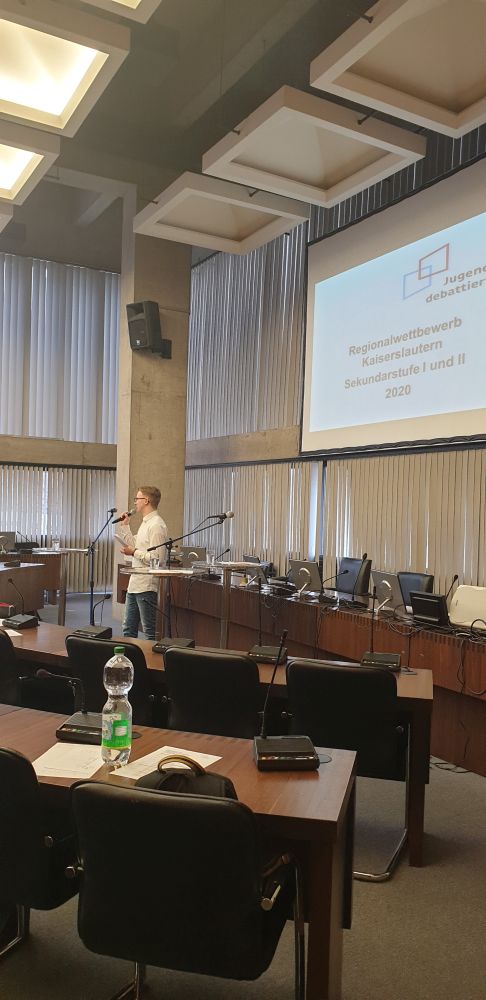 Am Dienstag machte sich die Klasse 10C zusammen mit Sandro Sprau (SEK I) und Lucas Kehrer (SEK II) auf den Weg zum Rathaus nach Kaiserslautern. Dort fand der Regionalwettbewerb von „Jugend debattiert" statt.