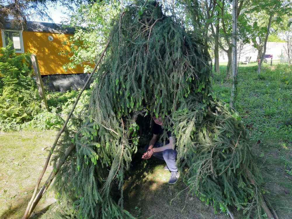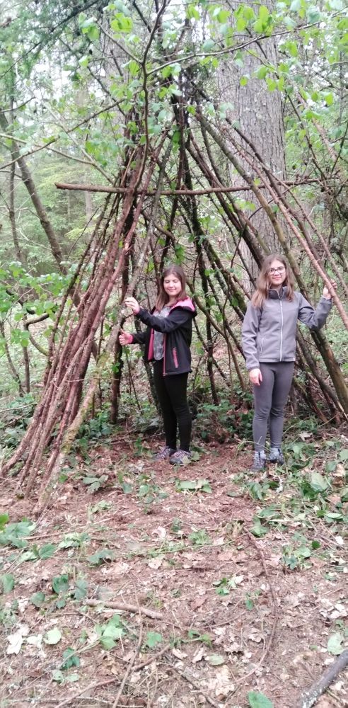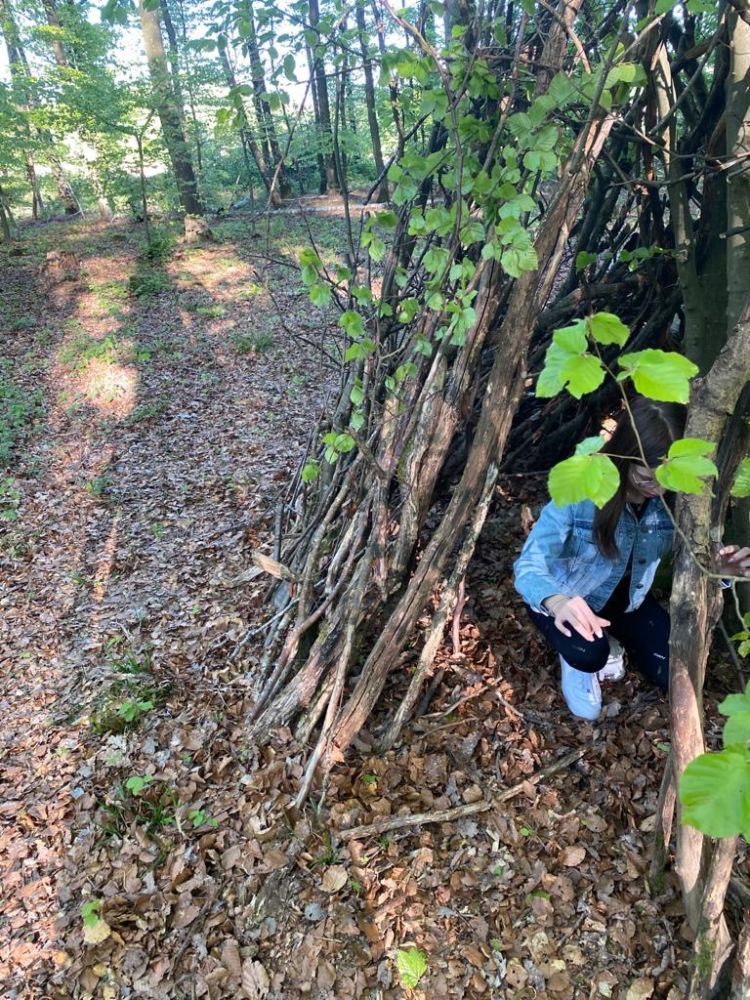 Die Klasse 10b setzt sich seit einigen Wochen mit von Zeltkonstruktionen inspirierter Architektur auseinander. Um Konstruktion und Statik in größerem Maßstab zu erproben, widmeten sich die Schülerinnen und Schüler dem Errichten von Waldtipis.