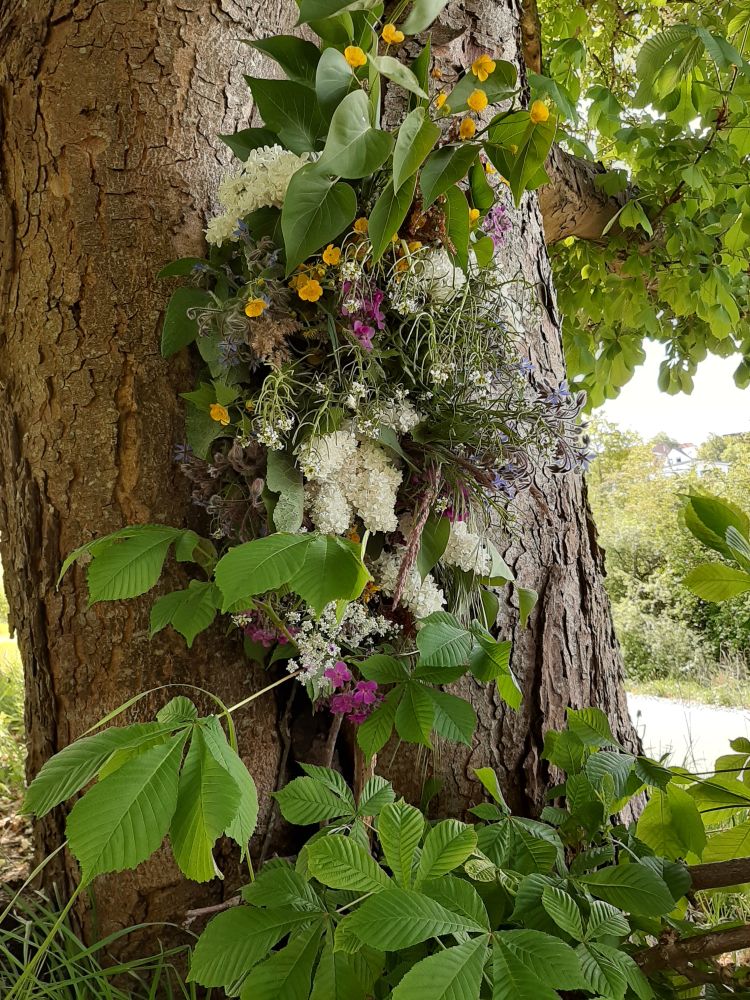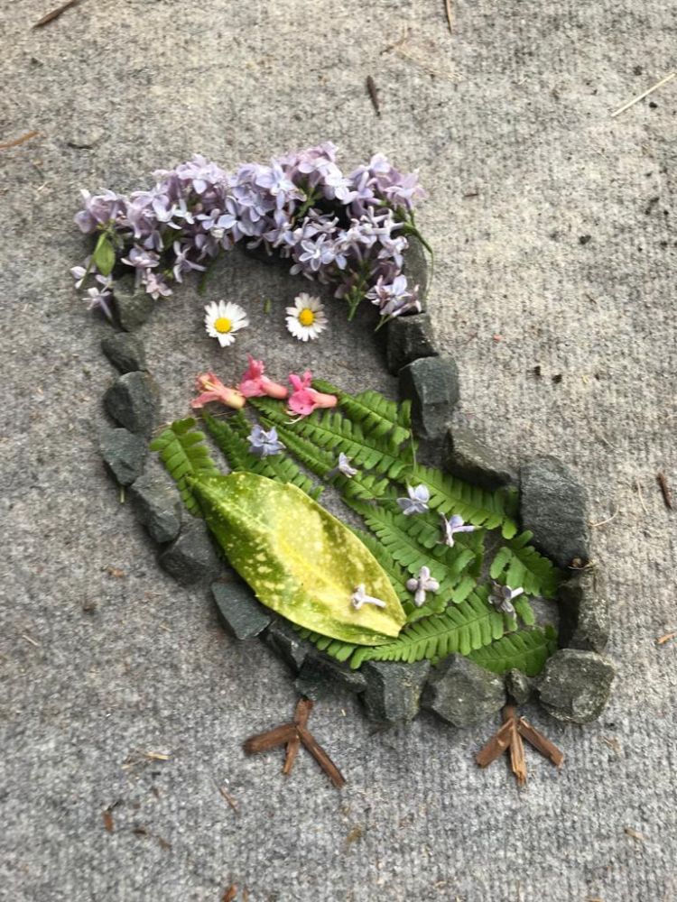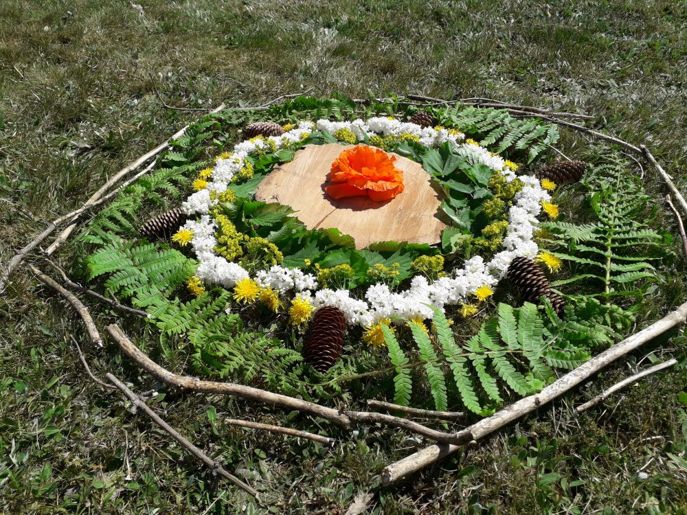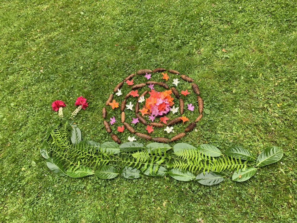 Die Klassen 7a und b setzten sich im Heimunterricht mit dem Landart-Künstler Andy Goldsworthy auseinander und gingen danach selbst hinaus um künstlerische Eingriffe in der Natur vorzunehmen. Im Vordergrund ihrer Arbeiten aus Naturmaterialien standen einerseits die Integration in das vorgefundene natürliche Umfeld, andererseits die Farbenpracht des Frühlings.