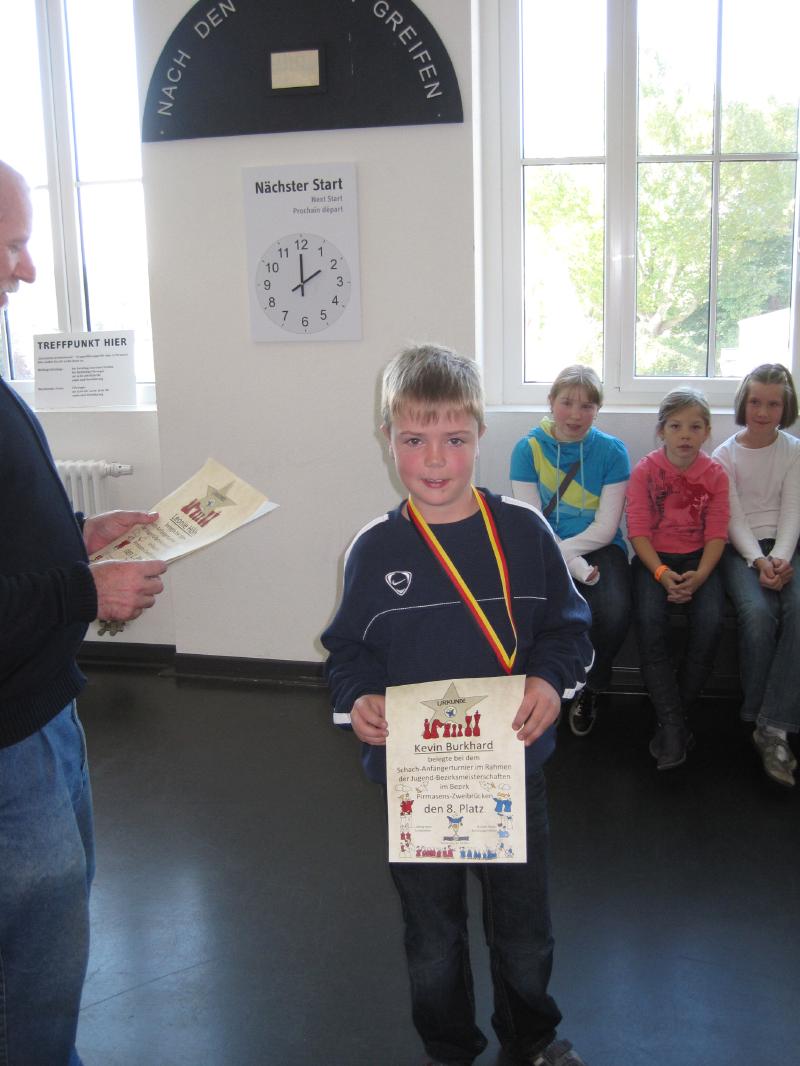 Kevin Burkhard (5b) spielte in allen Partien mutig auf Angriff und wurde auch durch zwei Siege und ein Unentschieden belohnt. Felix Besinger (6a) und Lucas Pfeiffer (5b) kämpften sogar lange Zeit um den ersten Platz. Allerdings musste sich Felix gegen Lucas und die spätere Turniersiegerin Leonie Höh vom Schachklub Zweibrücken geschlagen geben. Er gewann jedoch alle anderen Partien und landete so auf dem dritten Platz. Lucas schaffte sogar ein Unentschieden gegen die Turniersiegerin und belegte am Ende mit nur einem Punkt Abstand Platz 2.