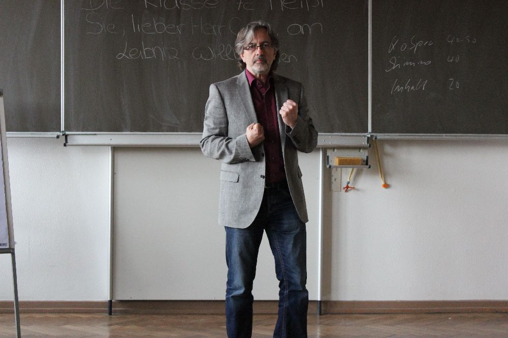 Er spielte einen schüchternen, unsicheren, einen sicheren, aufgeschlossenen und einen sehr lebhaften Referenten. Natürlich zog der "Lebhafte" und wild Gestikulierende die meiste Aufmerksamkeit auf sich.