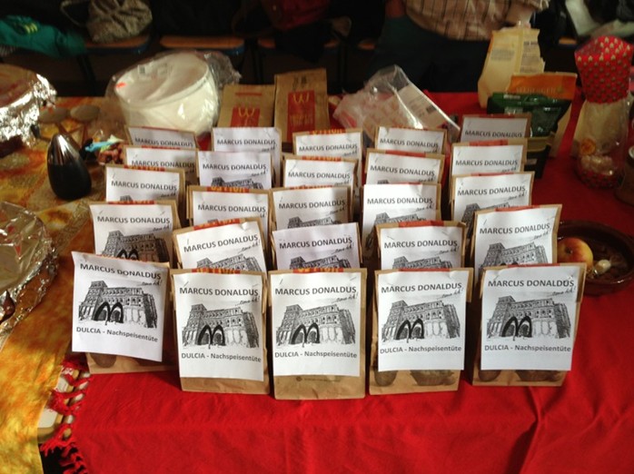 Die 9c gestaltete auf Anregung von Frau Gottert eine römische Taberna, in der man altrömische Köstlichkeiten wie Wurst mit Kichererbsensalat probieren konnte.
