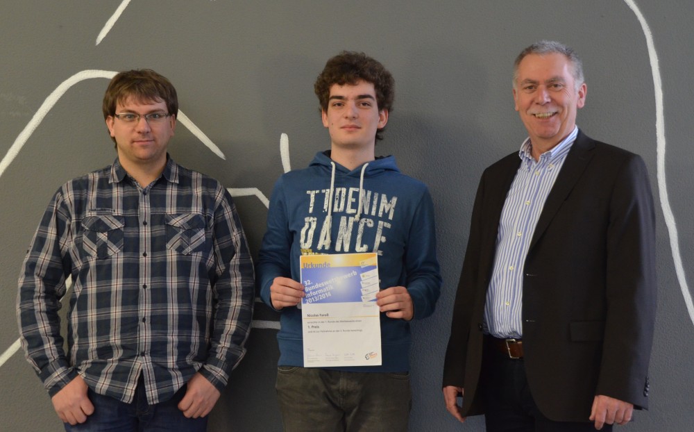 Das ist die Krönung der letzten Jahre: Nicolas Faroß erbrachte eine außergewöhnliche Leistung - mit seinem 2. Platz war er in der ersten Runde des Bundeswettbewerbs der Beste seiner 10. Klassenstufe im ganzen Land. [Mehr...]