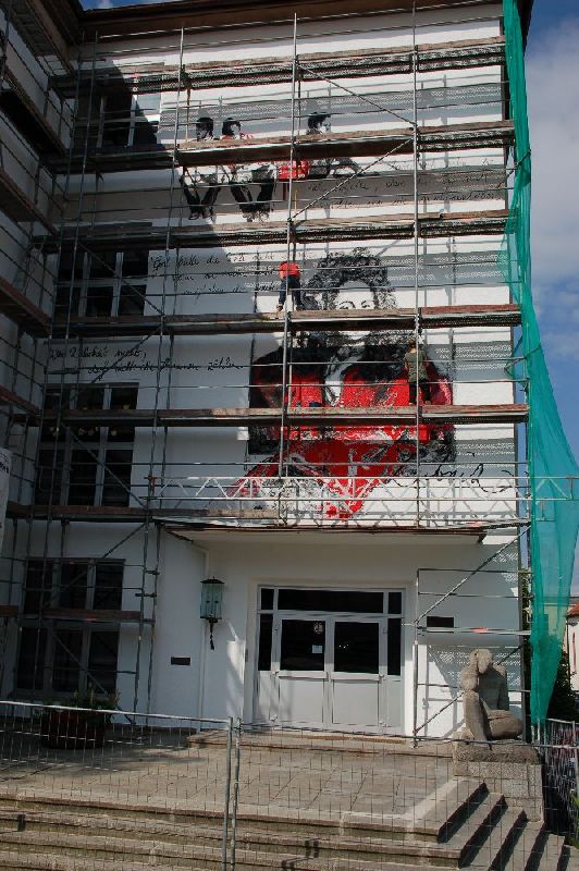 Vielen Dank an die Künstlerin, die trotz des erwarteten Babys noch bei den sommerlichen Temperaturen viele Tage auf dem Gerüst tätig war!